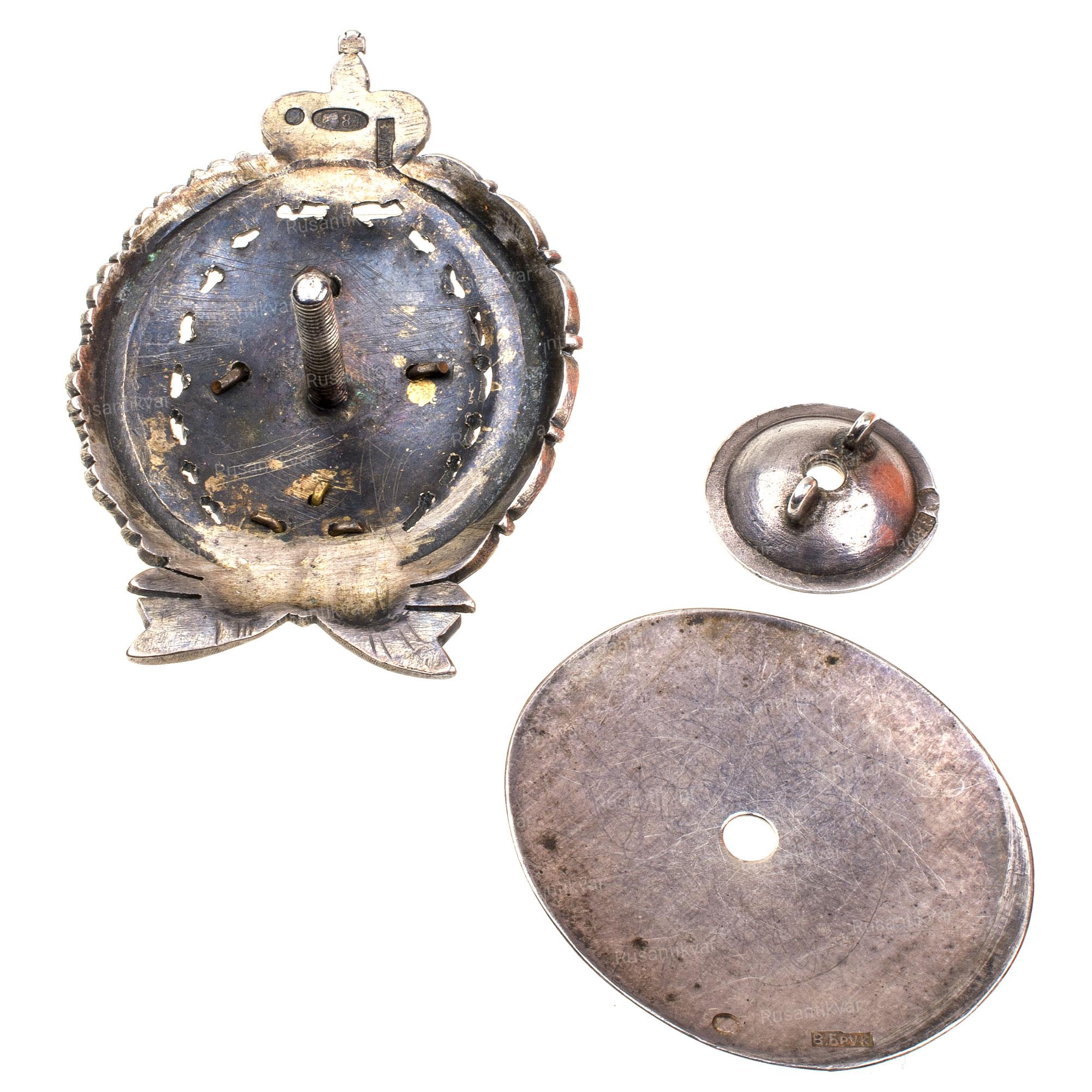Мастерская В. Брука, Тифлис, 1915-1917 гг. Серебро, золочение. Вес 23,12 гр. Размер 51.5х35.5 мм. Клейма на оборотной стороне: пробирное “84” и женская головка в кокошнике вправо, знак удостоверения женская головка в кокошнике вправо и фирмы развернутое “В. Брук”.