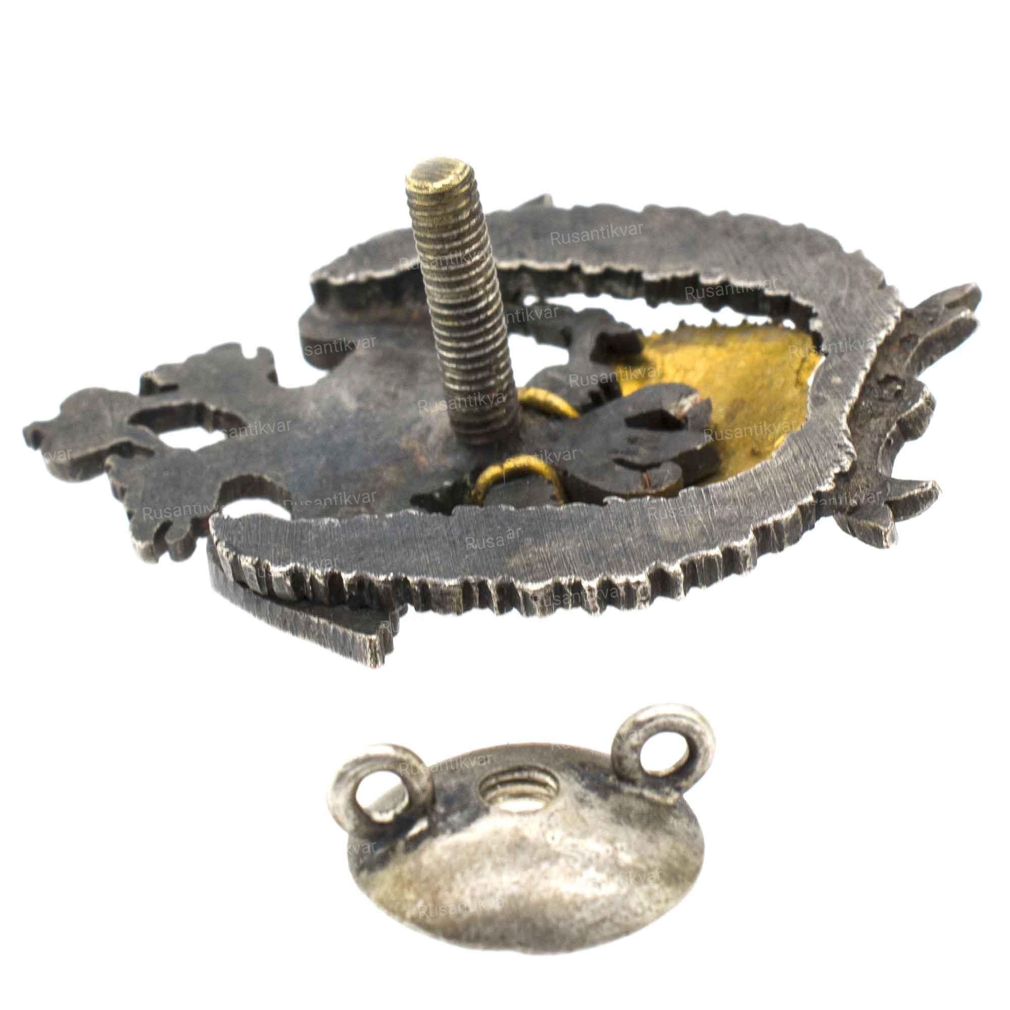 Российская Империя, 1911–1917 гг. Неизвестная мастерская. Бронза, серебрение, 22,6 г. Размеры 48,18×37,48 мм. Сохранность почти отличная. Патрикеев, Бойнович.1# 1.1.71. Утвержден 17 февраля 1911 г. Редкий.