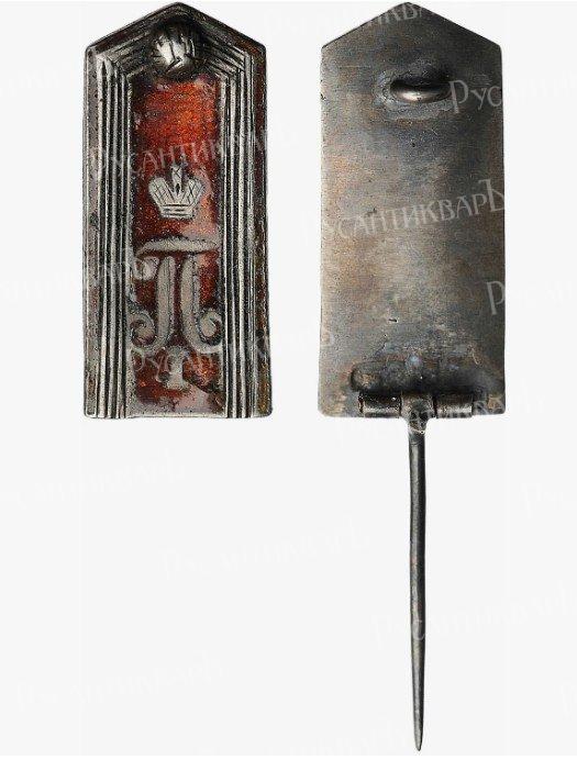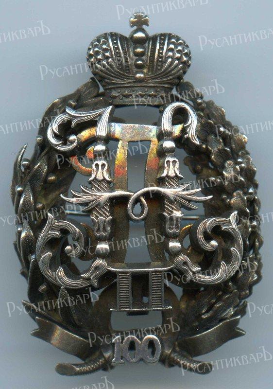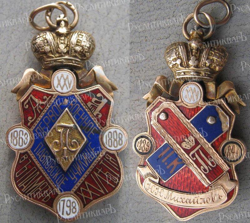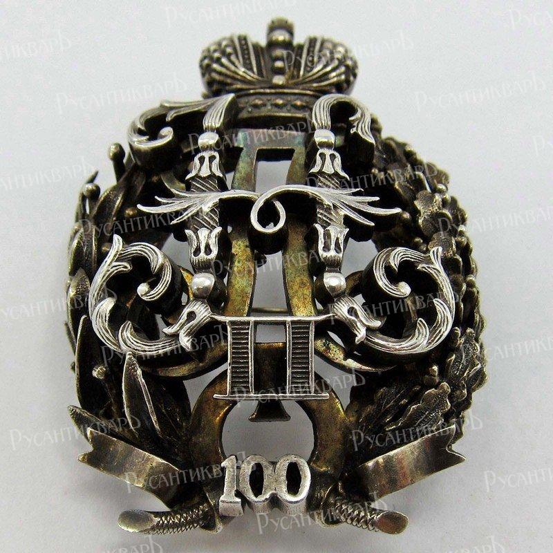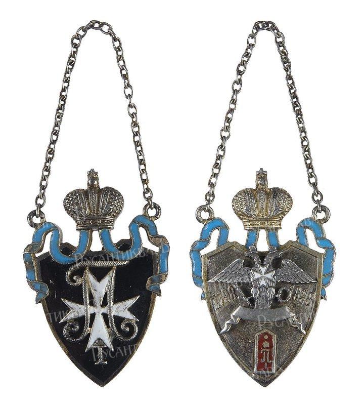 Утверждён 7 декабря 1898 года к юбилею училища. Представлял собой соединённые вензеля императоров Павла I и Николая II, окружённые венком из дубовых и лавровых листьев. Внизу на банте — серебряное число «100».