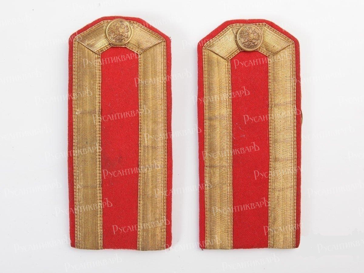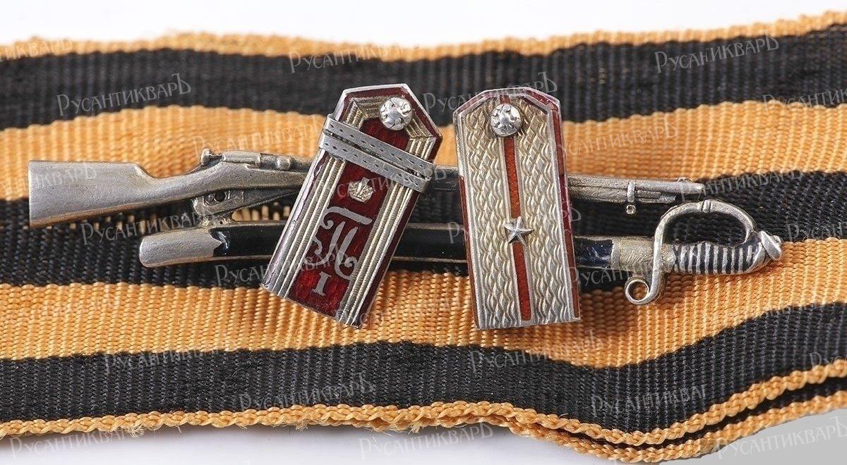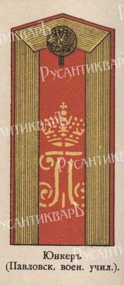 У юнкеров были алые погоны без выпушки с желтым вензелем императора Павла I «ПI» и золотым накладным вензелем императора Николая II «НII» в роте Его Величества.