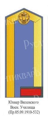 Виленское военное училище (с 1910 года): погоны светло-синие, без выпушки, без шифровки, золотой прибор.