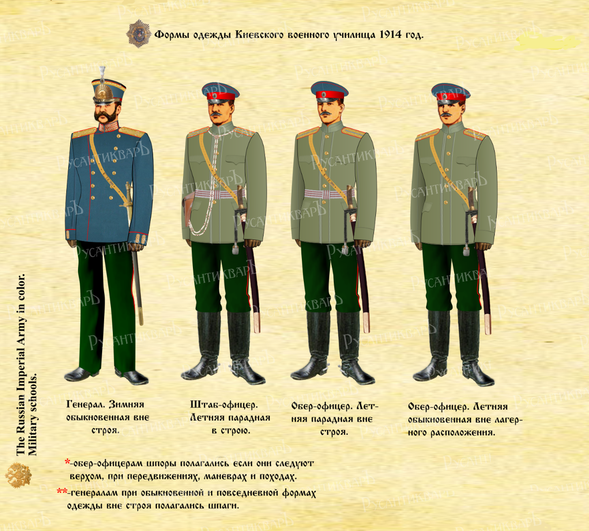 Форма одежды офицеров и юнкеров Киевского Училища.