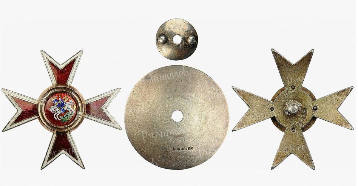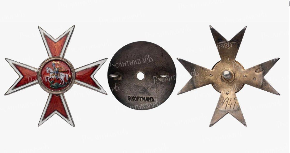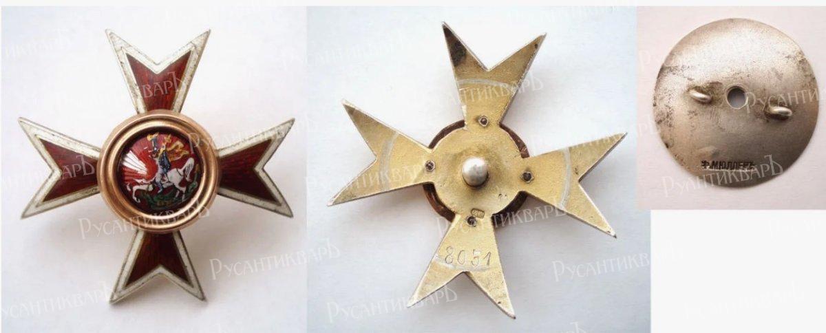 Нагрудный знак Высочайше утверждён 4 октября 1913 года. Мальтийский крест красной эмали с белым ободком. В середине его красный эмалевый кружок с золотым ободком, а на нём белая фигура Святого Георгия Победоносца.