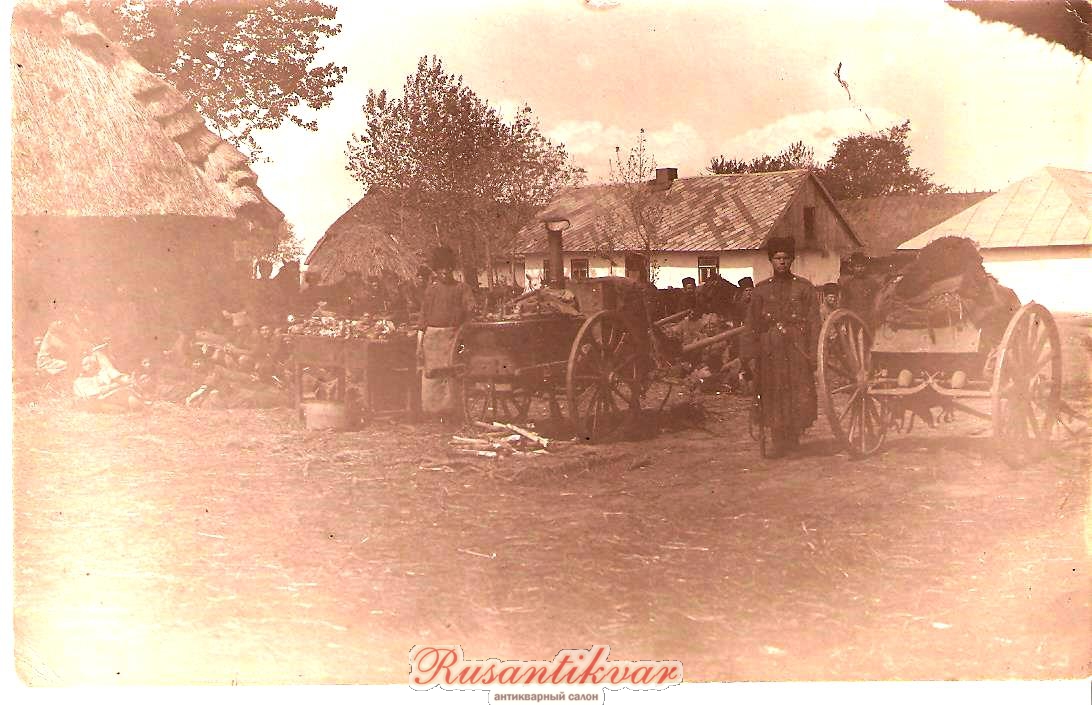 Пластуны 6 пластунского батальона.Над дверью табличка с надписью: "№7 Батальонный лазарет.Отдел. 6-го Пл.бат.