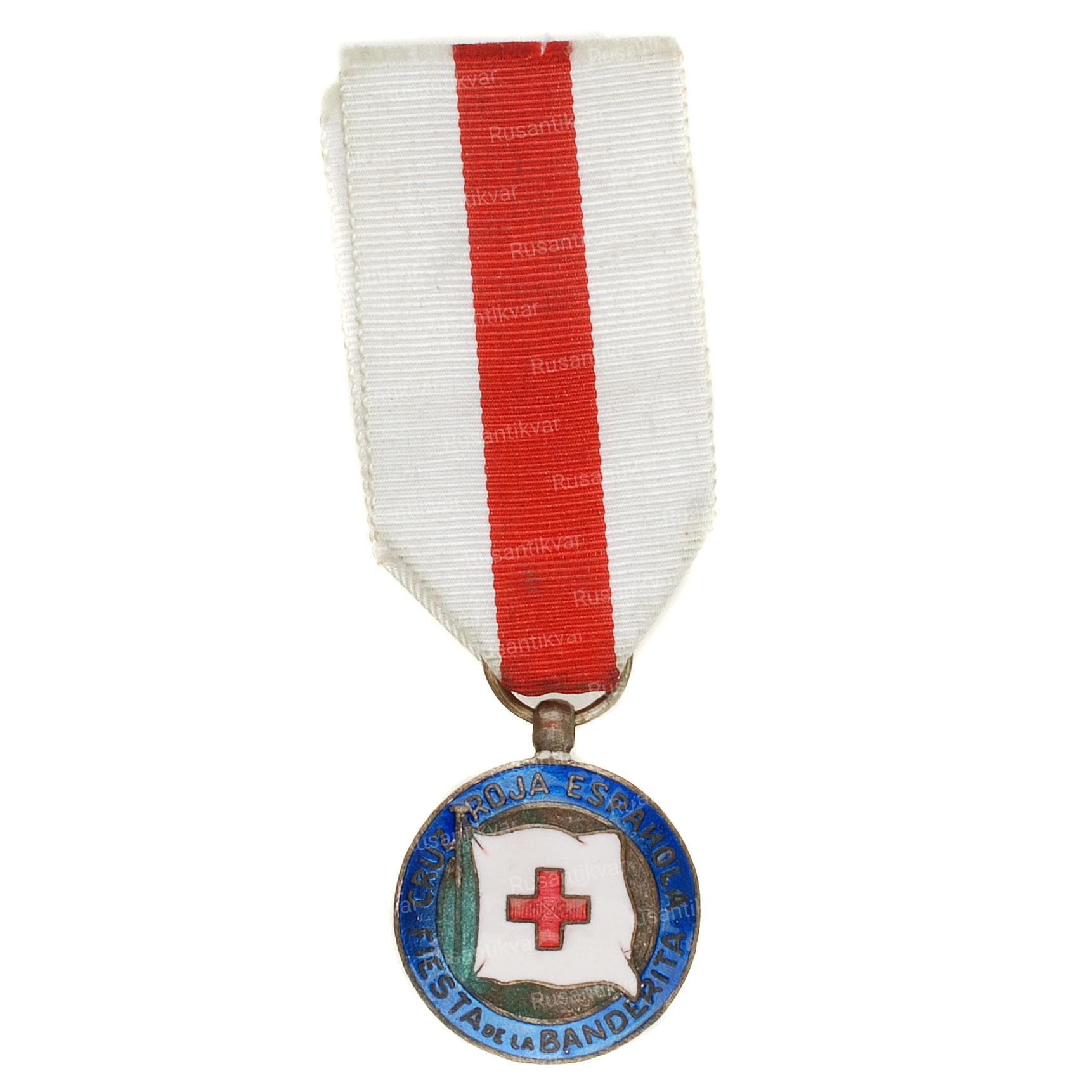 Медаль Испанского Красного Креста. Оригинальное название награды на испанском языке; Medalla de la Cruz roja española. Королевство Испания. Знаки Отличия Испанского креста были учреждены 20 июня 1876 года указом короля Испании Альфонаса XII (годы правления; 1857-1885 гг.).