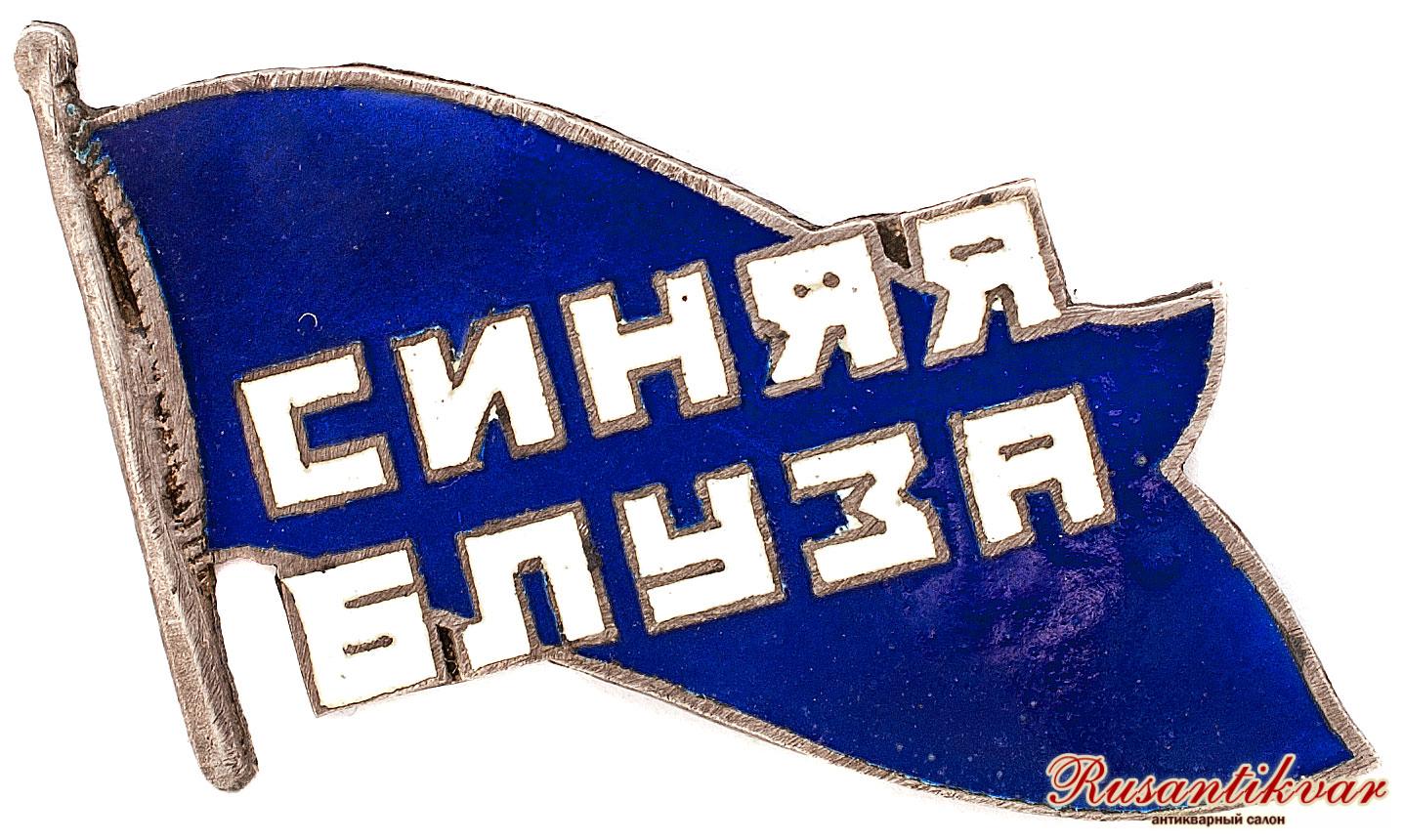 "Си́няя блу́за" — советский агитационный эстрадный театральный коллектив, отражавший самые различные темы — от общеполитических и международных до мелочей быта, новое революционное массовое искусство. Существовал с начала 1920-х до 1933 года. Название дала производежда — свободная синяя блуза и чёрные брюки (или юбка), в которой стали выступать артисты, что соответствовало традиционному облику рабочего на агитплакатах. Артисты театра носили значки: один — символическое изображение рабочего, который был и на печати театра, и на его афишах, а другой — в виде знамени. В дальнейшем, близкие по духу артисты других театров и эстрады, общественные деятели награждались значком с присуждением звания «синеблузника».Синяя блуза, как атрибут сценического костюма артистов с годами стала настолько популярной, что её использовали самодеятельные коллективы и известные ещё до Октябрьской Революции чтецы и куплетисты. Так Михаил Савояров в середине 1920-х годов выступал с экспериментальными стихами Ильи Сельвинского и читал под музыку поэму «Улялаевщина» в костюме синеблузника — в своей прежней, ещё дореволюционной манере.