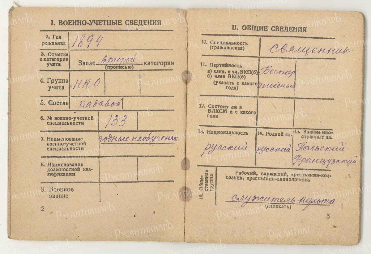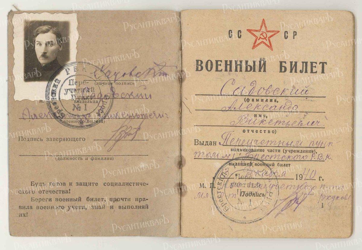 Жетон принадлежал бывшему офицеру Российской армии священнослужителю Садовскому Александру Викентьевичу. В комплект входит жетон, Военный билет и три фотографические карточки.