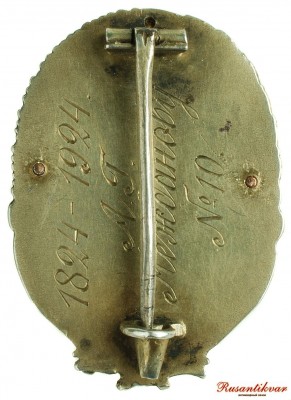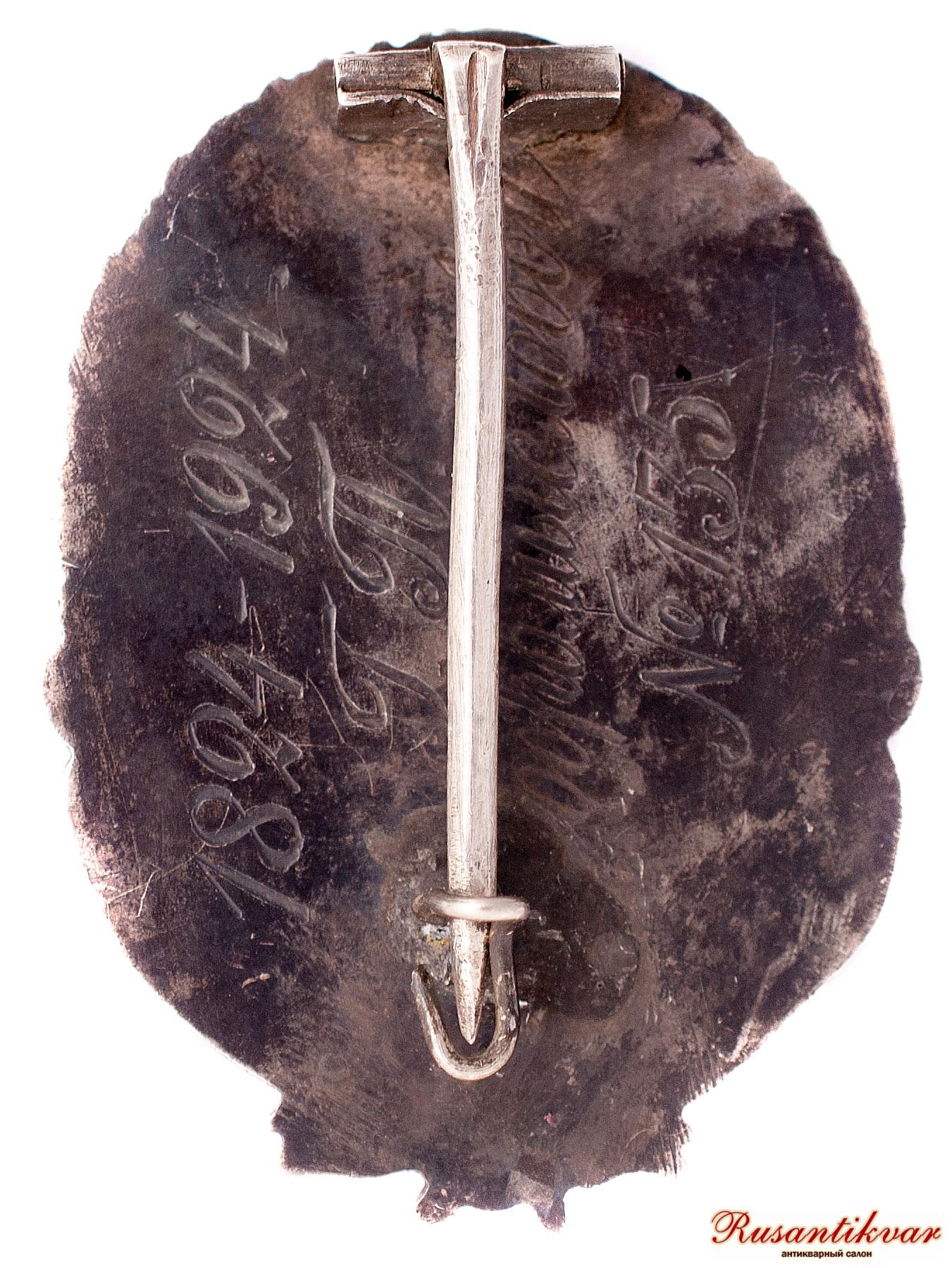 на реверсе вырезан номер знака, в нашем случае 10 , фамилия кавалера А.Г.Нежданов и даты 1824-1924 гг.