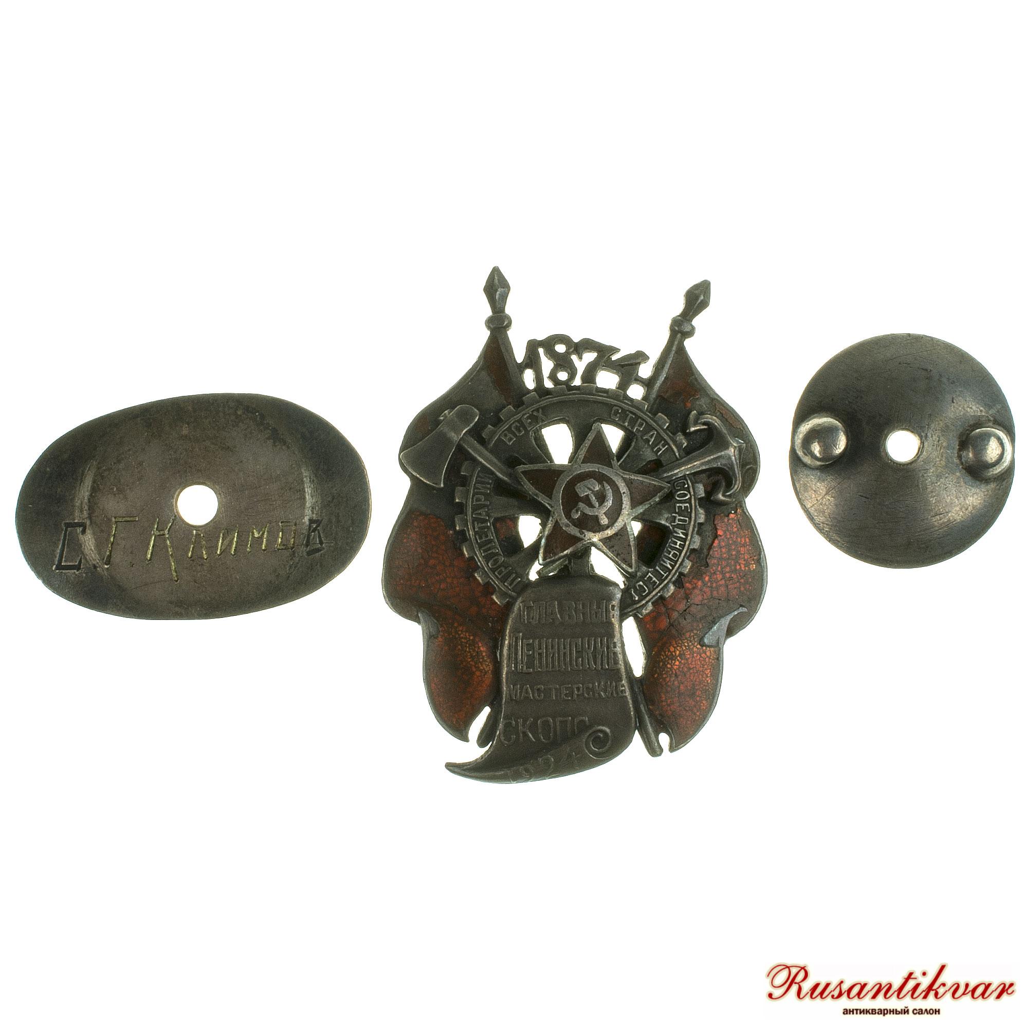 Знак в память 50-летия Главных Ленинских мастерских СКОПС № 66.