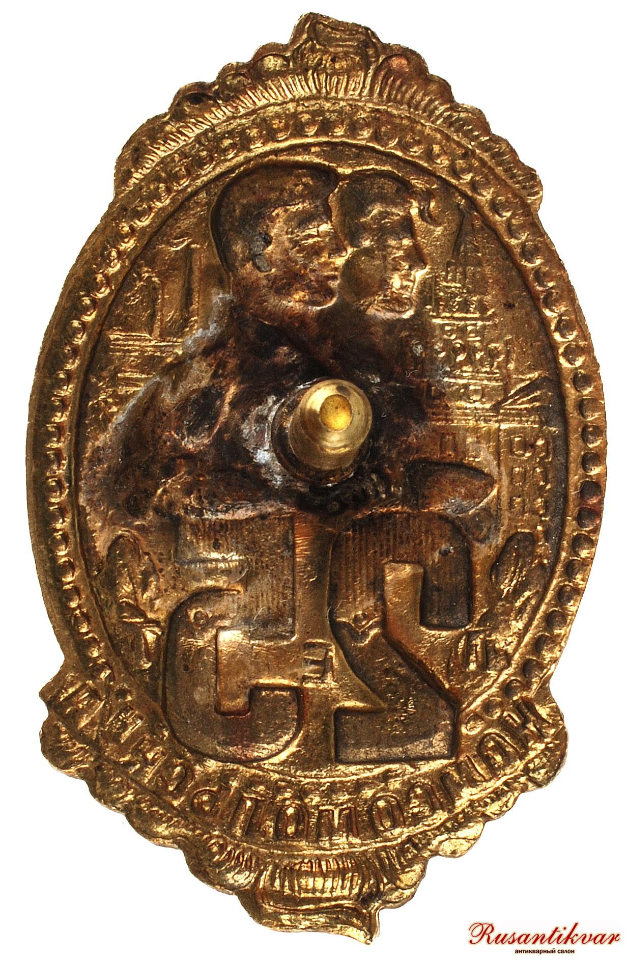 Знак "Пятидесятилетие со дня смерти К.Маркса".Изготовлен по заказу трудового коллектива Ленинградского завода им."Карла Маркса" 14 марта 1933 г.На торжественно-траурном заседании в концертном зале Выборгского дома культуры знаки вручили лучшим производственникам предприятия.Каждый награжденный получил вместе со знаком и специальное удостоверение.