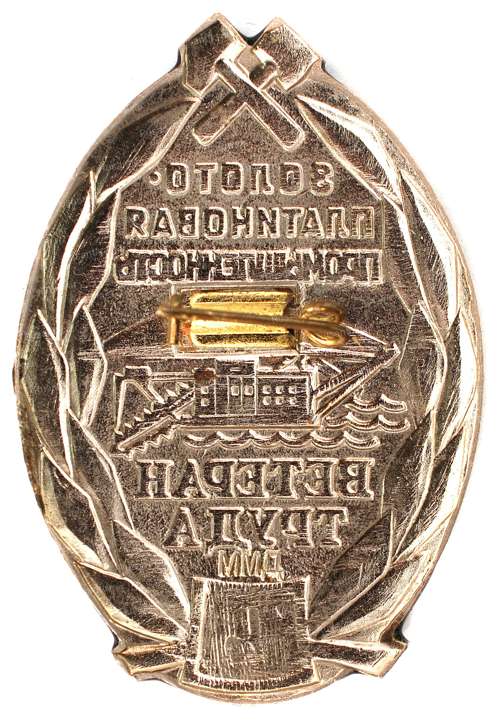 Знак "Ветеран труда золото-платиновая промышленность. 15 лет трудового стажа."