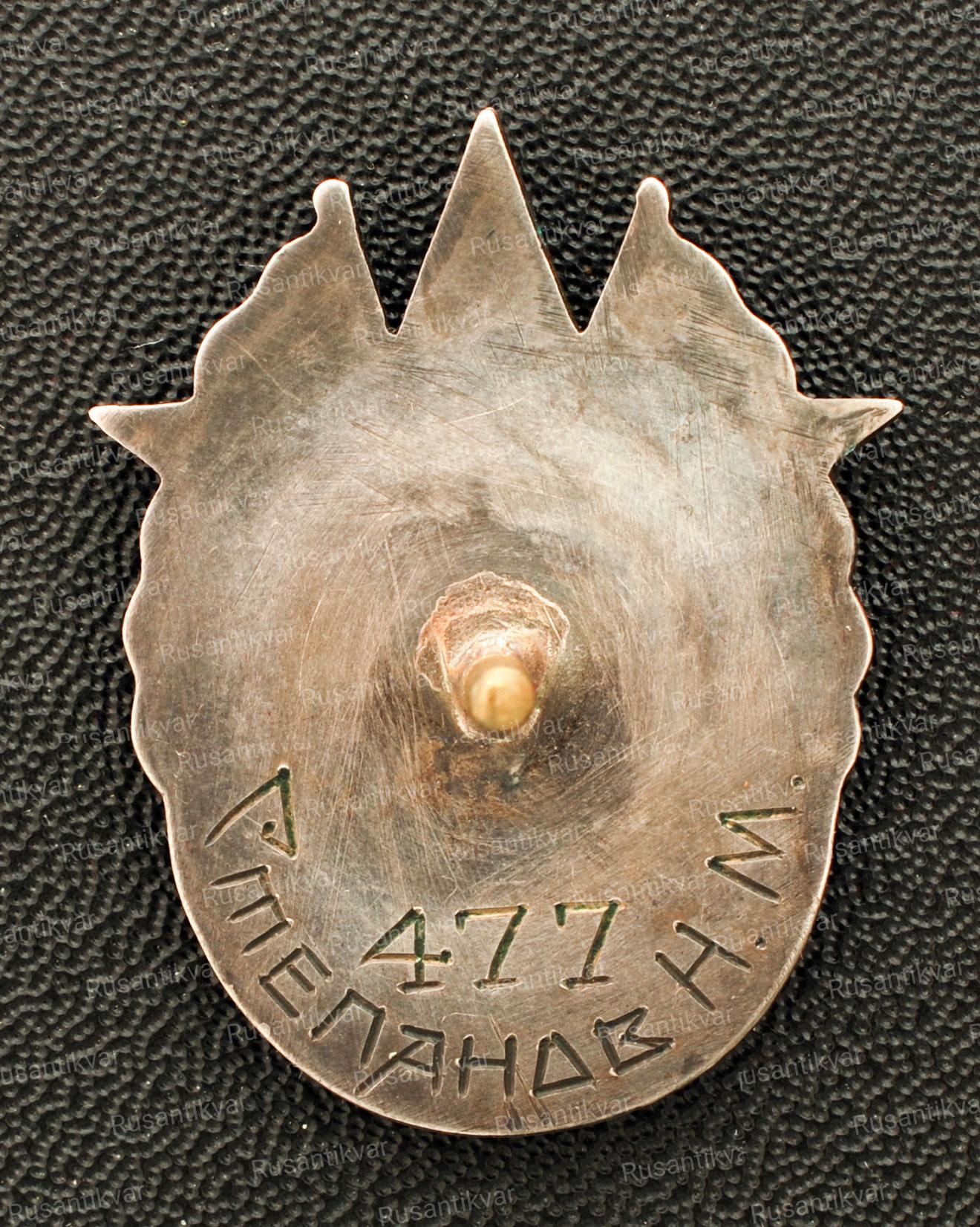 Знак "Лучшему изобретателю ВОИЗ СССР" №477 награжден Степанов Н.М. 1934-1939 гг.