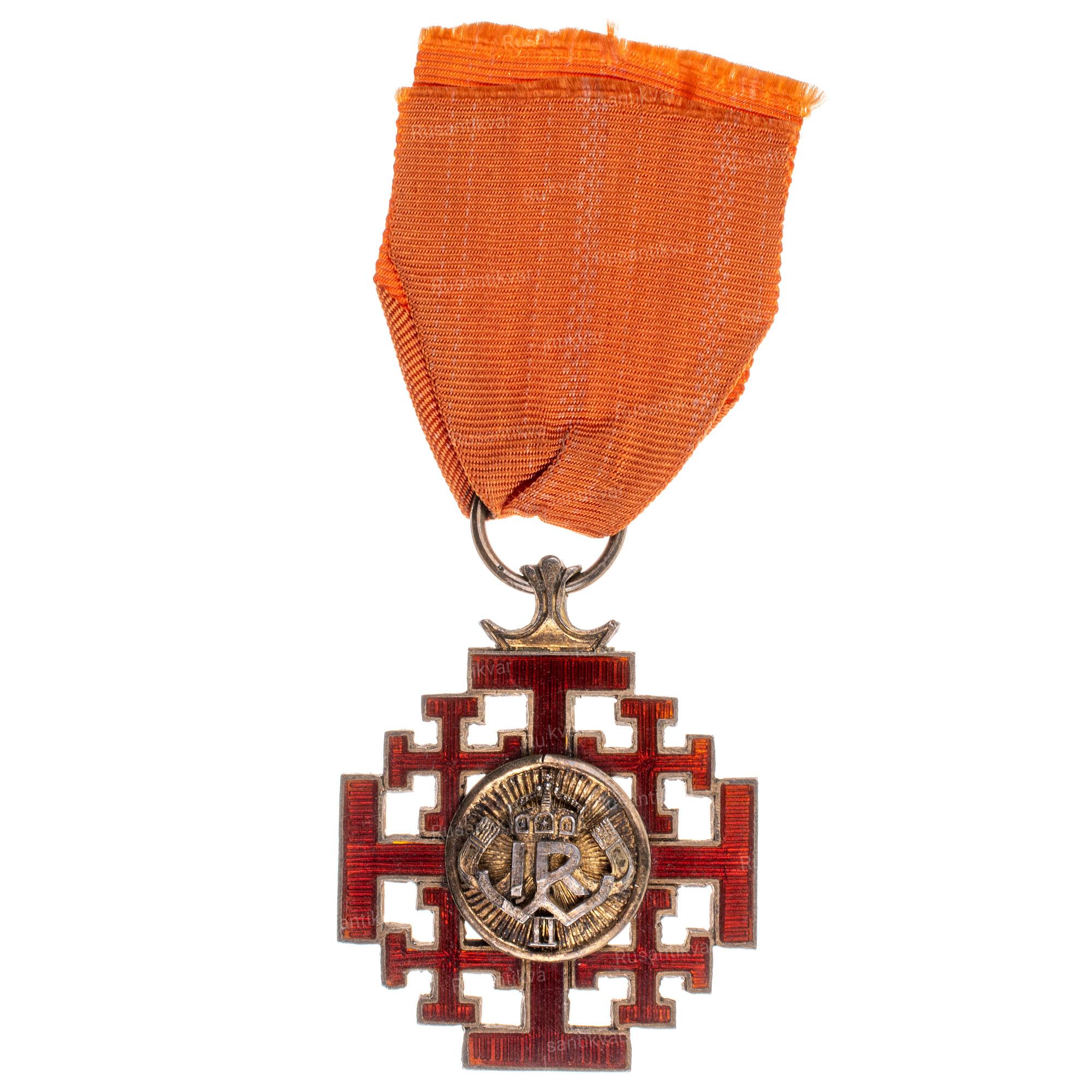 Крест гроба Господня для членов делегации немецкого императора Вильгельма 2. Выдавался лицам сопровождавшим императора на святую землю.Поездка продолжалась с 11 октября по 26 ноября 1898 г. На пике которой была торжественная церемония открытия Немецкой церкви Спасителя в Иерусалиме . В рамках его поездки в Палестину были посещены города Константинополь , Хайфа , Яффо , Иерусалим и Бейрут , которые тогда были частью Османской империи . Император поддерживал власть султана в нестабильной Османской империи после балканского кризиса , пытался политически укрепить христианство , особенно протестантскую церковь, и поощрял немецких христианских и еврейских поселенцев, не желая встать на их защиту политически.
