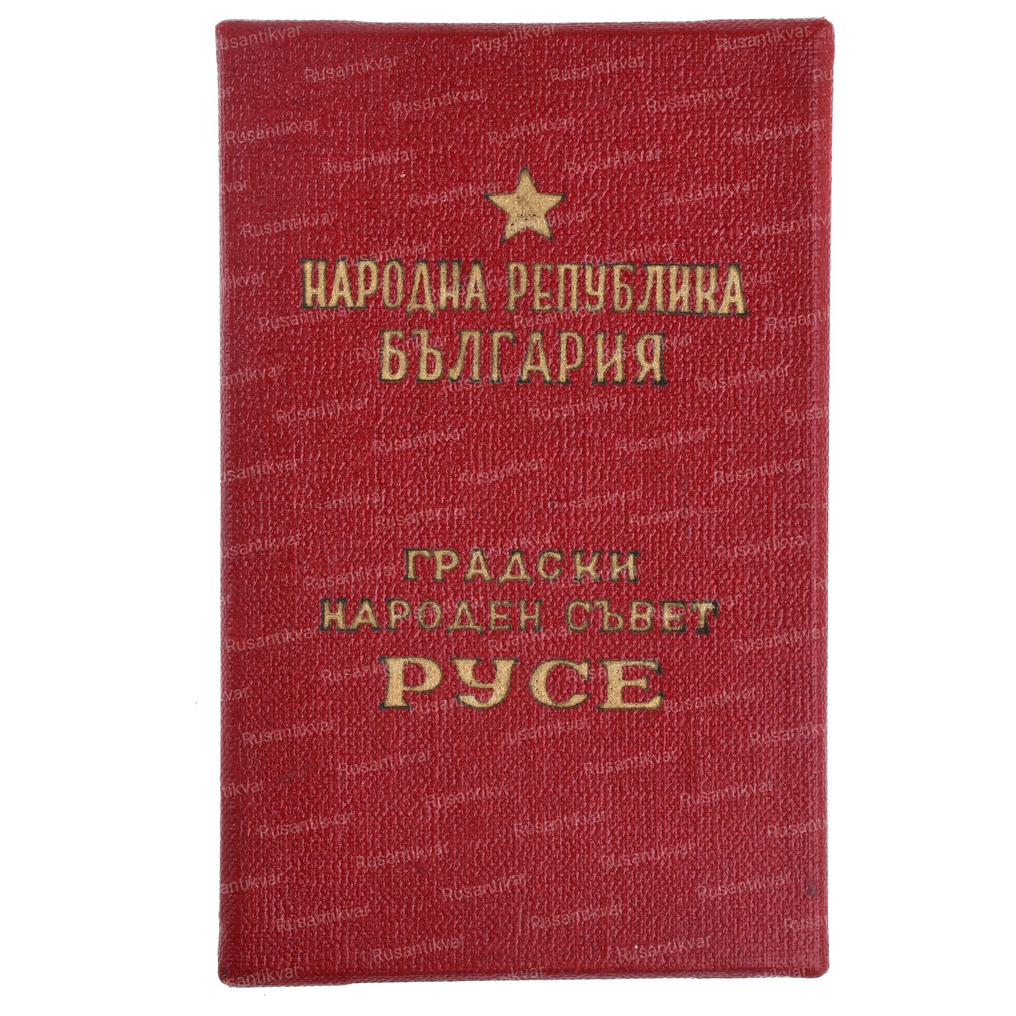 Знак представителя городского народного Совета г.Русе в наградной коробке.