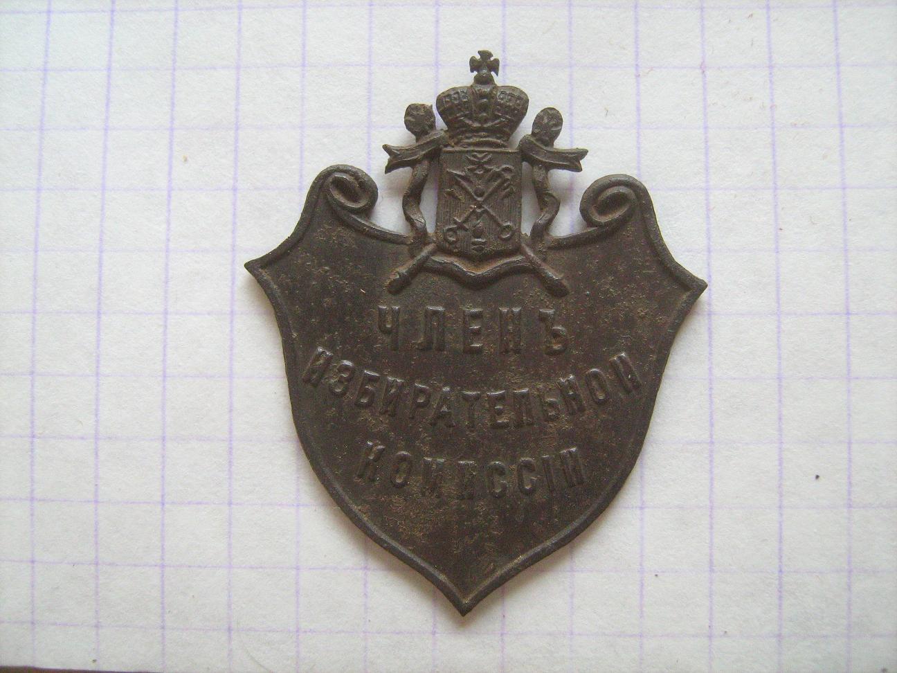Еще немного знаков: Член избирательной комиссии, г.Санкт-Петербург. (разновидность) 2) Знак техосмотра-освидетельствования на 1895 год шлюпочной мастерской Московского речного яхт-клуба.