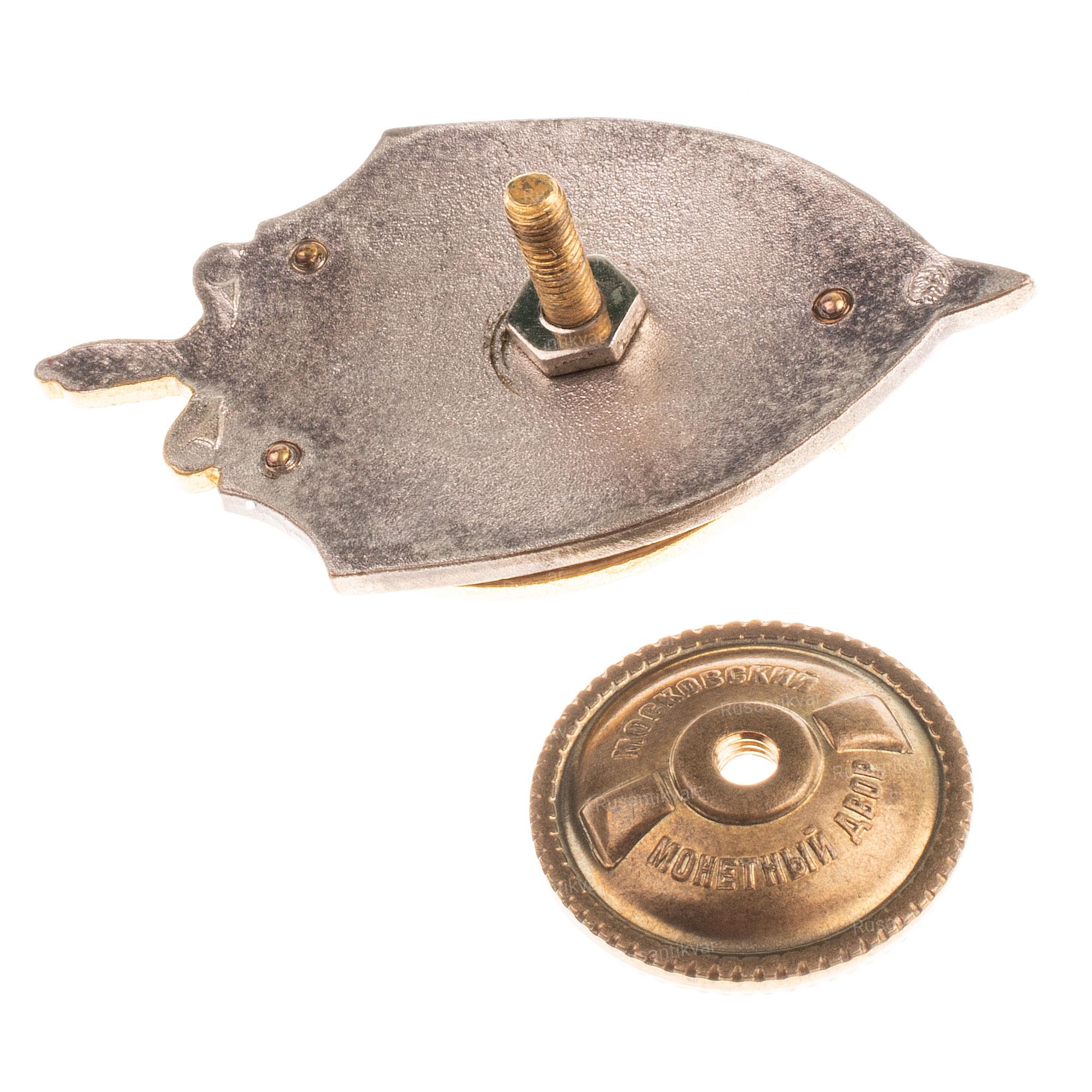 Утверждён в 1950 г. Москва, завод «Победа», 1950 - 1957 гг. На гайке по окружности надпись: «З-Д ПОБЕДА /МОСКВА». Бронза, эмаль 14.12 гр. Размеры 45.7 х 36.5 мм. Сохранность отличная (UNC).