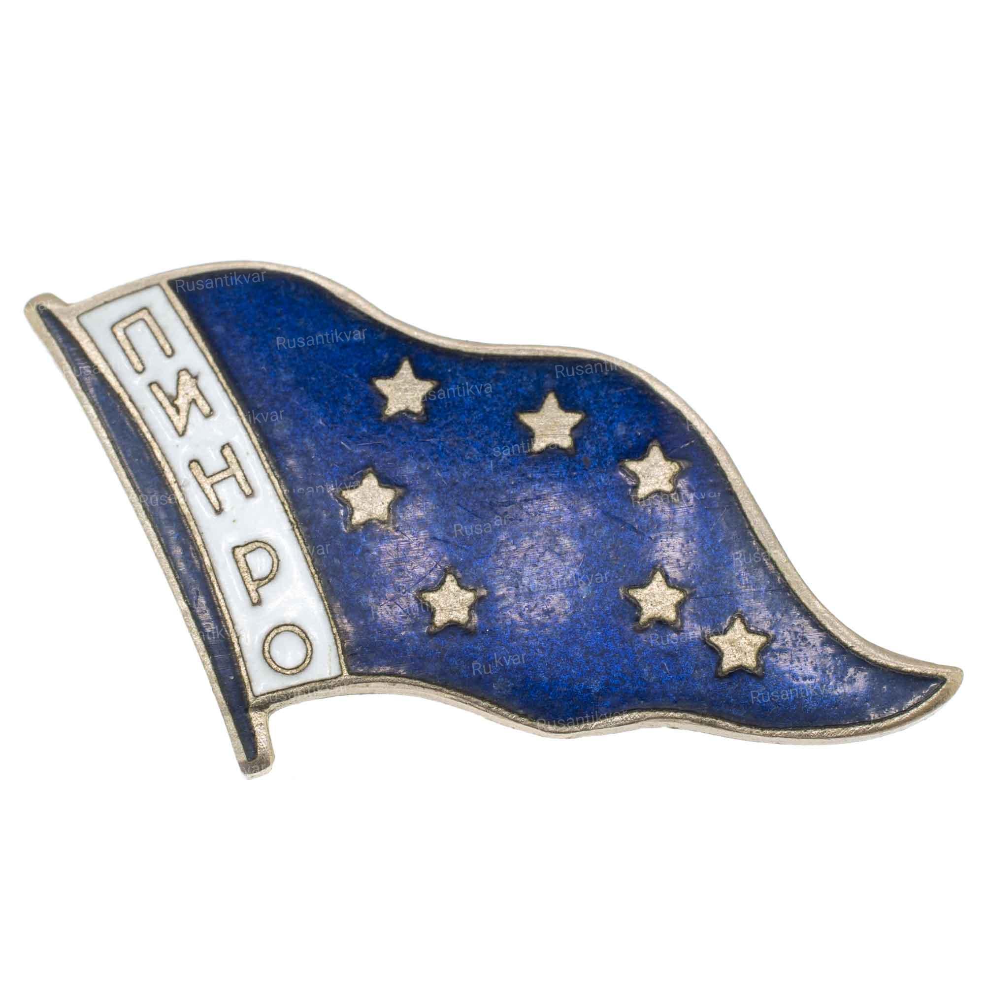 Знак нагрудный на булавке «ПИНРО» с эмблемой Полярного Научно-исследовательского института рыбного хозяйства и океанографии Мурманского отделения Государственного Института океанографии им. Н.Н. Зубова