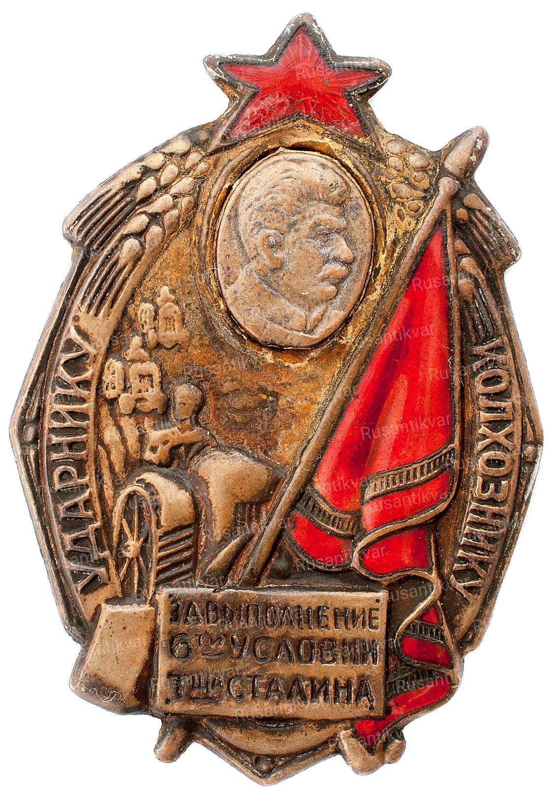 Знак "Ударнику колхознику. За выполнение 6-ти условий т-ща Сталина" 1930-е г.