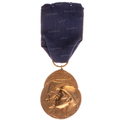 Медаль «Добровольческий комбат» 1914-1918 гг. Вручалась за добровольное зачисление и службу в боевой части в опасной зоне в течение не менее шести месяцев во время Первой мировой войны. Позже критерии отбора будут распространены на добровольцев старше 40 лет, которые служили в боевой части в опасной зоне в течение трех месяцев, или более 50 человек, которые служили месяц при тех же условиях, чем медицинский персонал, который служил два лет в неоккупированной Бельгии. Другие условия приписывания существовали для самых молодых, бежавших из оккупированной Бельгии, которые были ранены в боях или посмертно