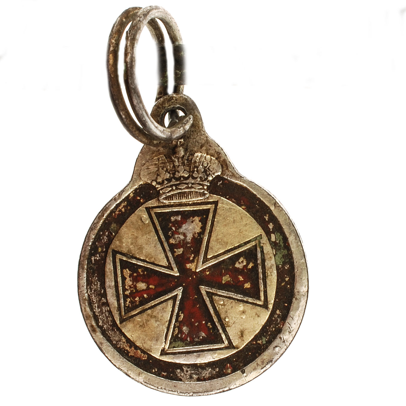 Знак отличия ордена Святой Анны №184.627 СПб монетный двор, серебро 72 пробы, вес 8,63 гр., толщина 2,28 мм., размер 30,7х23,7 мм., ухо 6,11 мм., корона 9,7 мм.