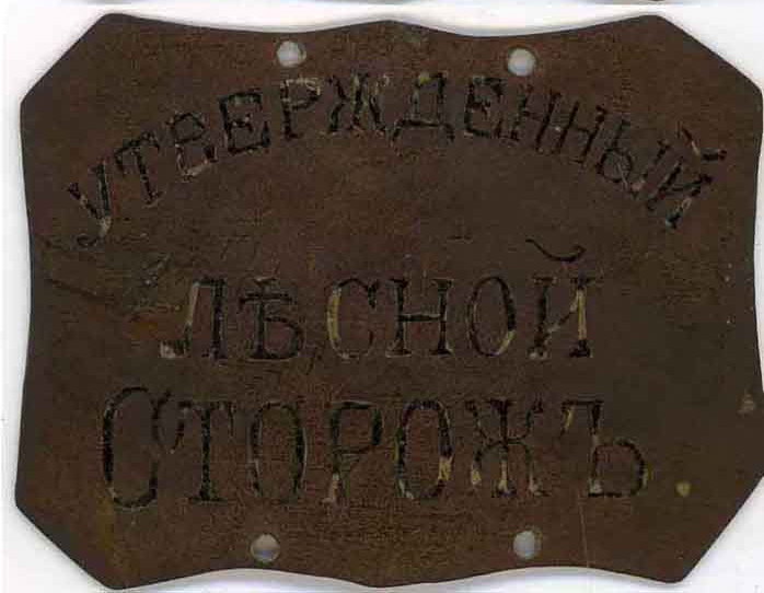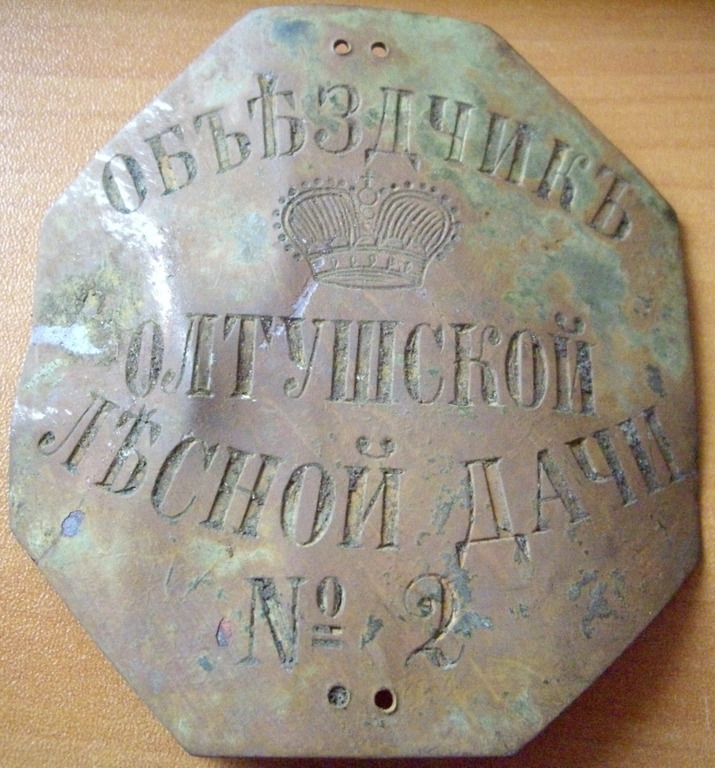 Должностной знак; Объездчик Олтушской лесной дачи.
