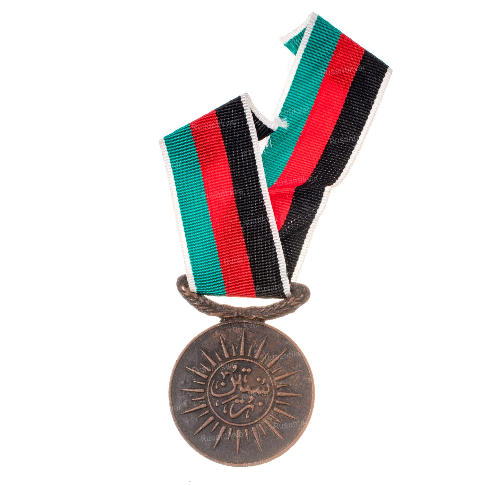 Учрежден Эмиром Аманулла - ханом в 1922 г. Кабул, неизвестная мастерская, 1922 - 1923 гг. Белый металл (основание), серебро (центральный медальон), 154.83 гр. Размеры 93.5 х 53 мм. Сохранность отличная (UNC-). Редкий (Р1).