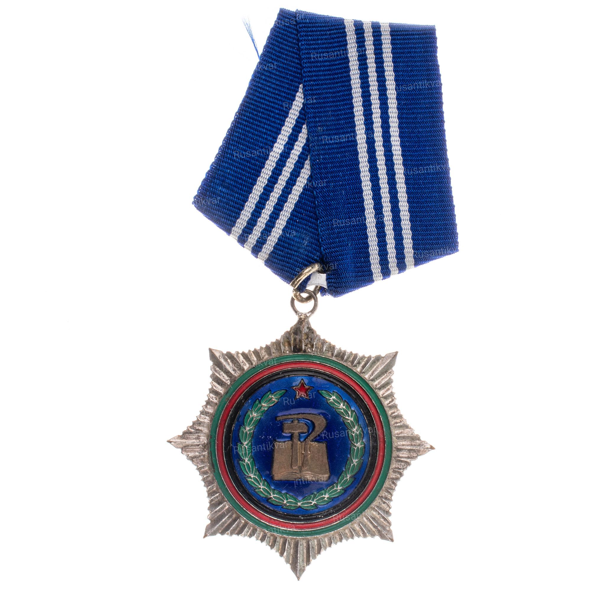 Учреждён 17 мая 1982 г. Московский Монетный двор, 1982 - 1990 гг. Серебро, эмаль 23.7 гр. Размеры 50 х 46 мм. Сохранность отличная (UNC). На оборотной стороне на арабском языке надпись "СЛАВА". Довольно редкий (Р).