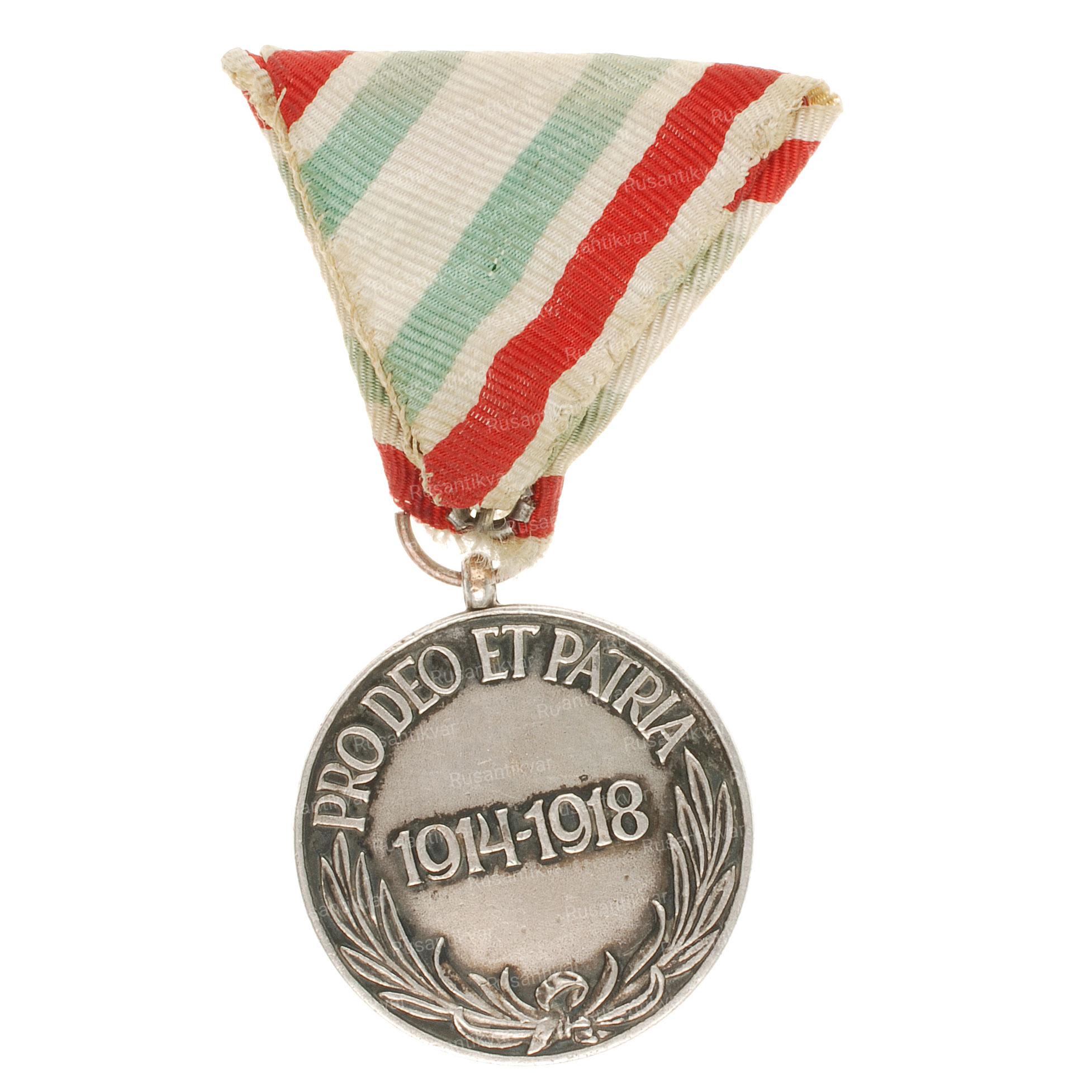 Медаль «Ветеранов 1 Мировой войны» (оригинальное название на венгерском языке; Haborus Emlekerem kardokkal es sisakka) для некомбатантов.