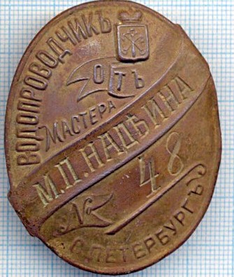 Должностной знак; Водопроводчик от мастера Ф.В.Никифорова, Санкт-Петербург. Водопроводчик от мастера М.П.Надеина, Санкт-Петербург.