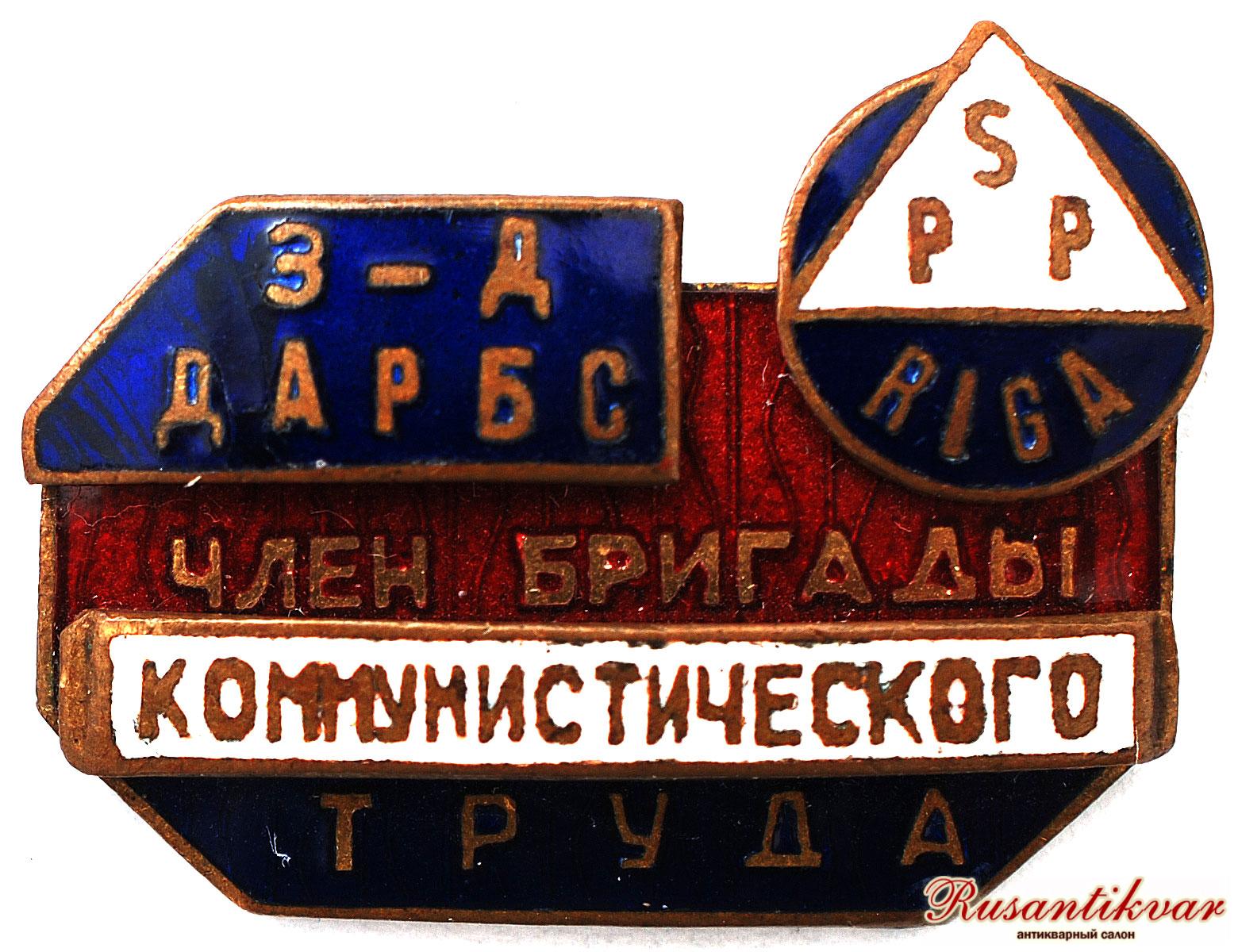 Знак "Завод ДАРБС.Член бригады Коммунистического труда. г.Рига PSP" Латвийская ССР