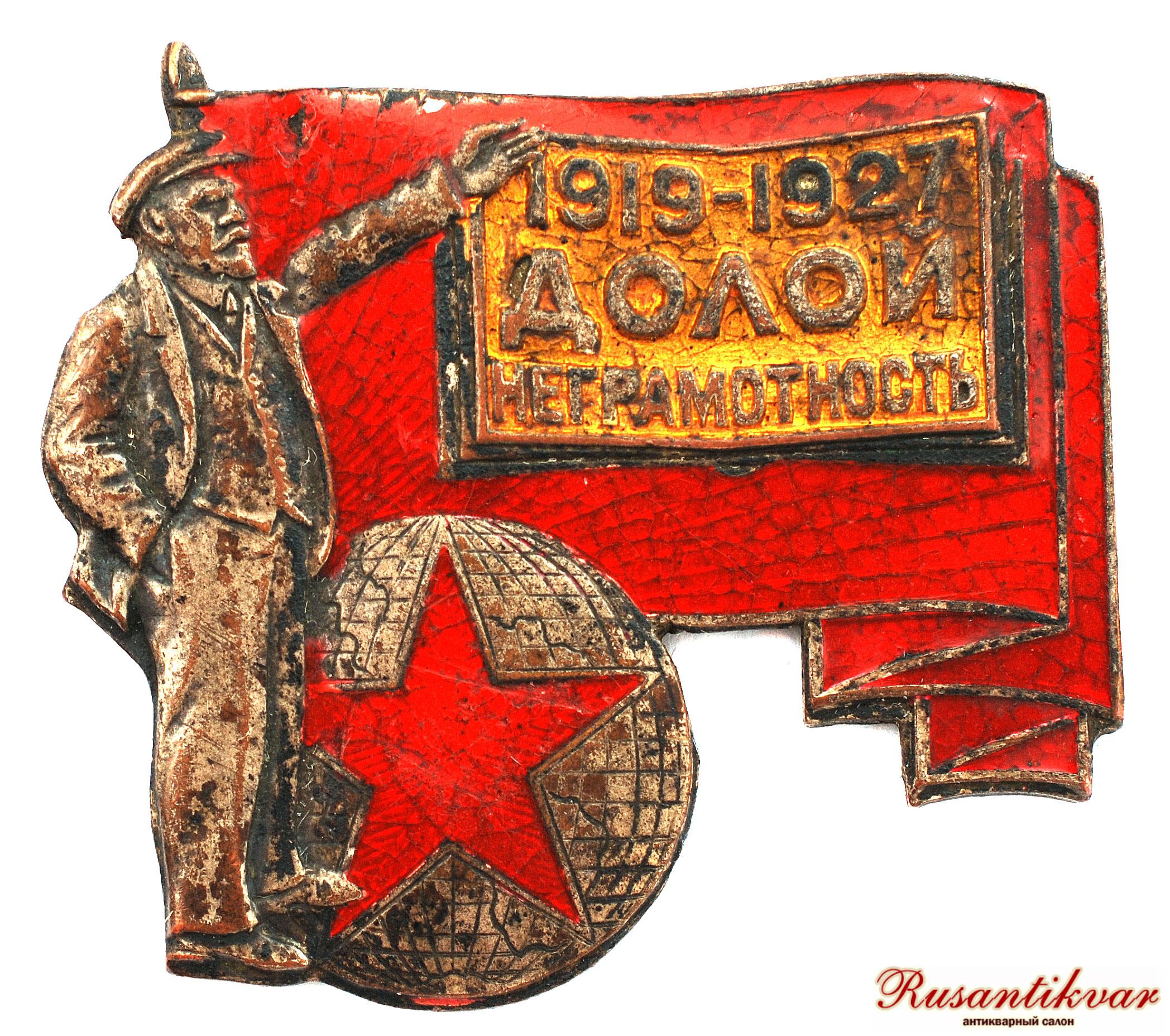 Основанное в 1923,году Всероссийское общество «Долой неграмотность»ставило своей задачей всемерное содействие проведению мероприятий по ликвидации неграмотности и малограмотности среди взрослого населения СССР. Общество создавало школы, группы, члены его вели индивидуальную работу по обучению неграмотных, а также широкую политико-просветительную работу. В 1930 общество насчитывало около 3 млн. членов с 200 тыс. ячеек; особенно большую работу оно проделало в деревне. За время своего существования (1923—36) члены общества обучили около 5 млн. неграмотных и малограмотных. Кампания по ликвидации безграмотности (с 1919 г. до начала 1940-х гг.) – массовое обучение грамоте взрослых и подростков, не посещавших школу, – была уникальным и самым масштабным социальным и образовательным проектом всей истории России. Неграмотность, в первую очередь – среди сельского населения, – была вопиющей. Перепись 1897 г. показала, что из 126 млн. зарегистрированных при опросе мужчин и женщин грамотных среди них оказалось только 21,1%. За почти 20 лет после первой переписи уровень грамотности почти не изменился: 73% населения (старше 9 лет) были элементарно неграмотны. В этом аспекте Россия стояла последней в списке европейских держав.