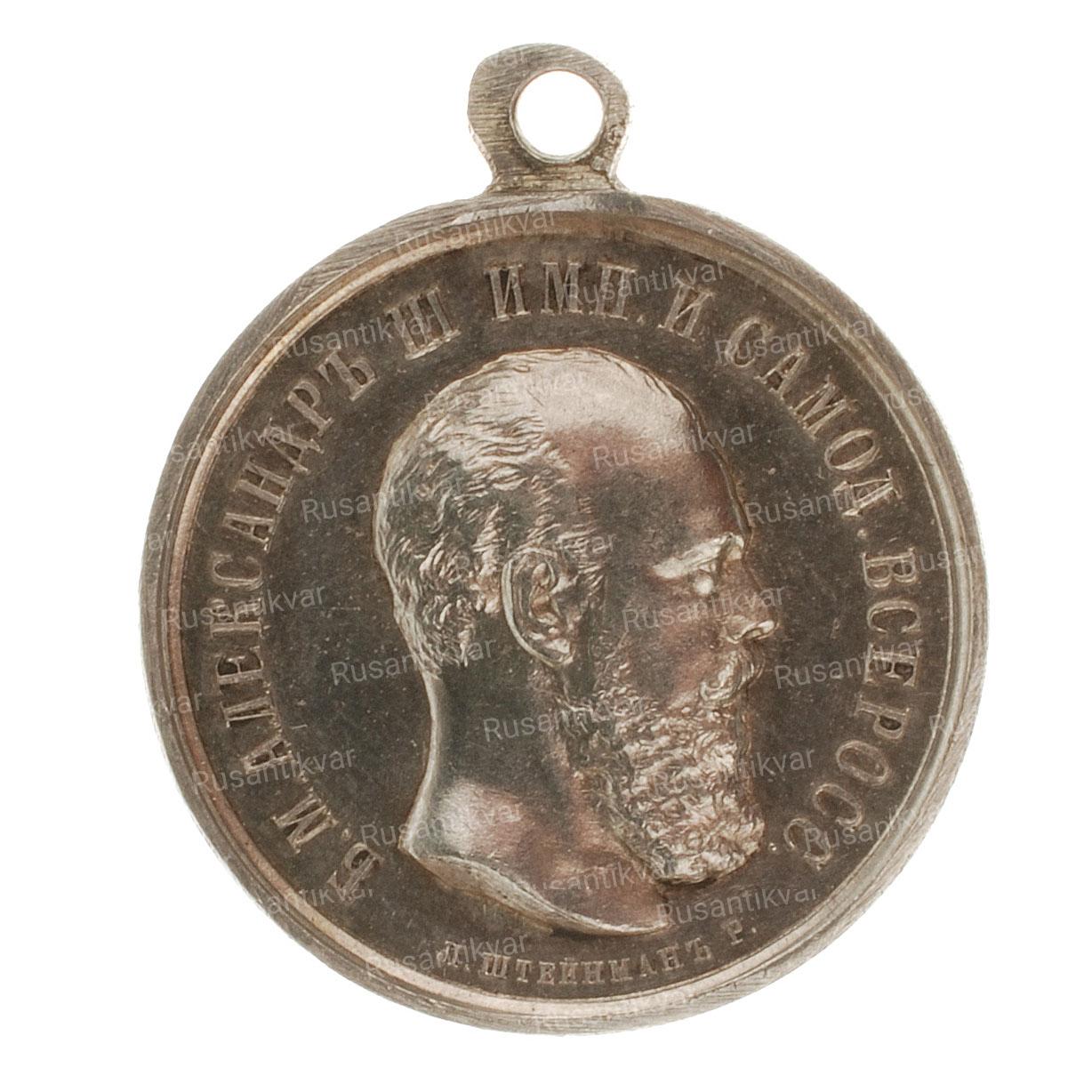 Медаль «За спасение погибавших» с портретом Императора Александра III с подписью медальера "Л.ШТЕЙНМАНЪ Р."