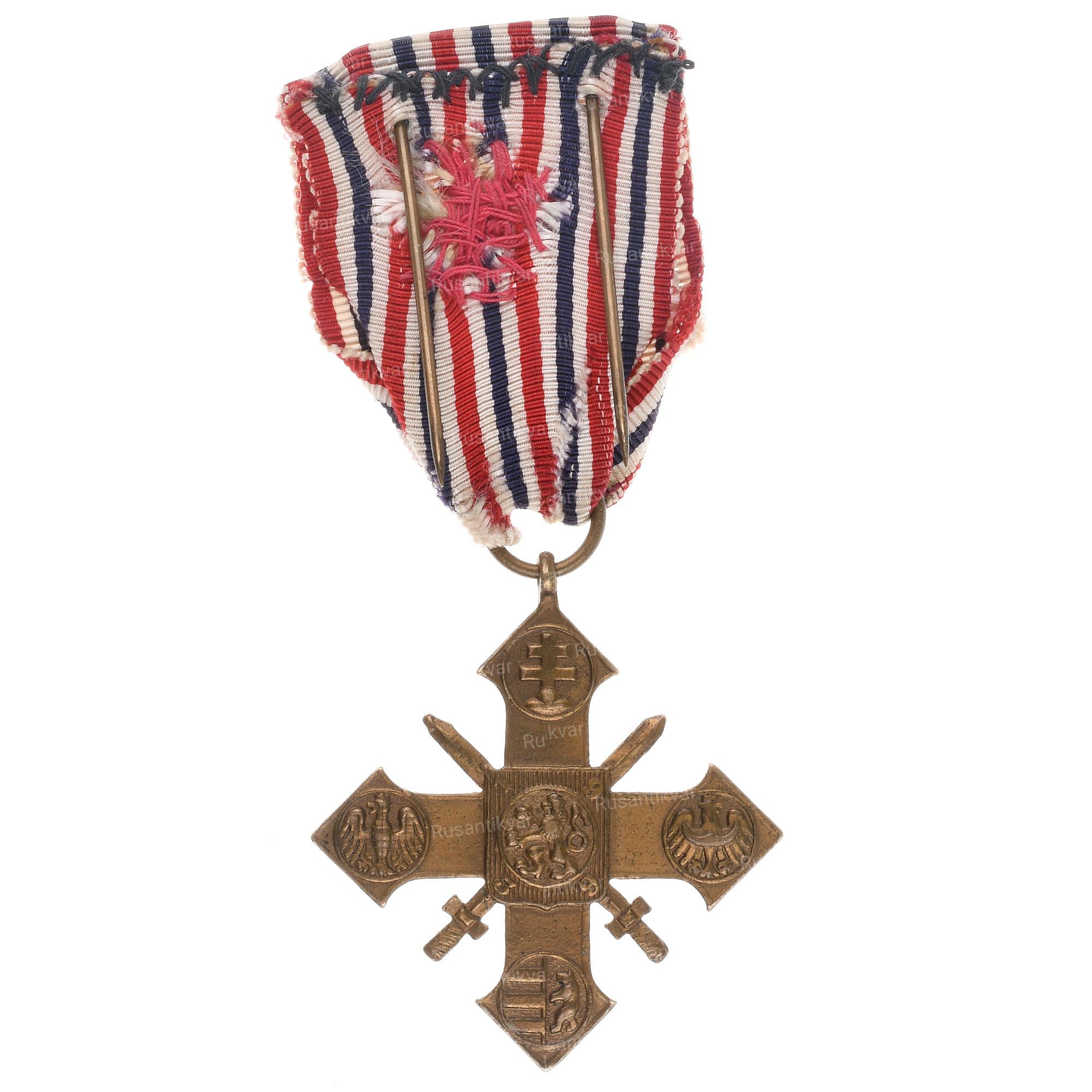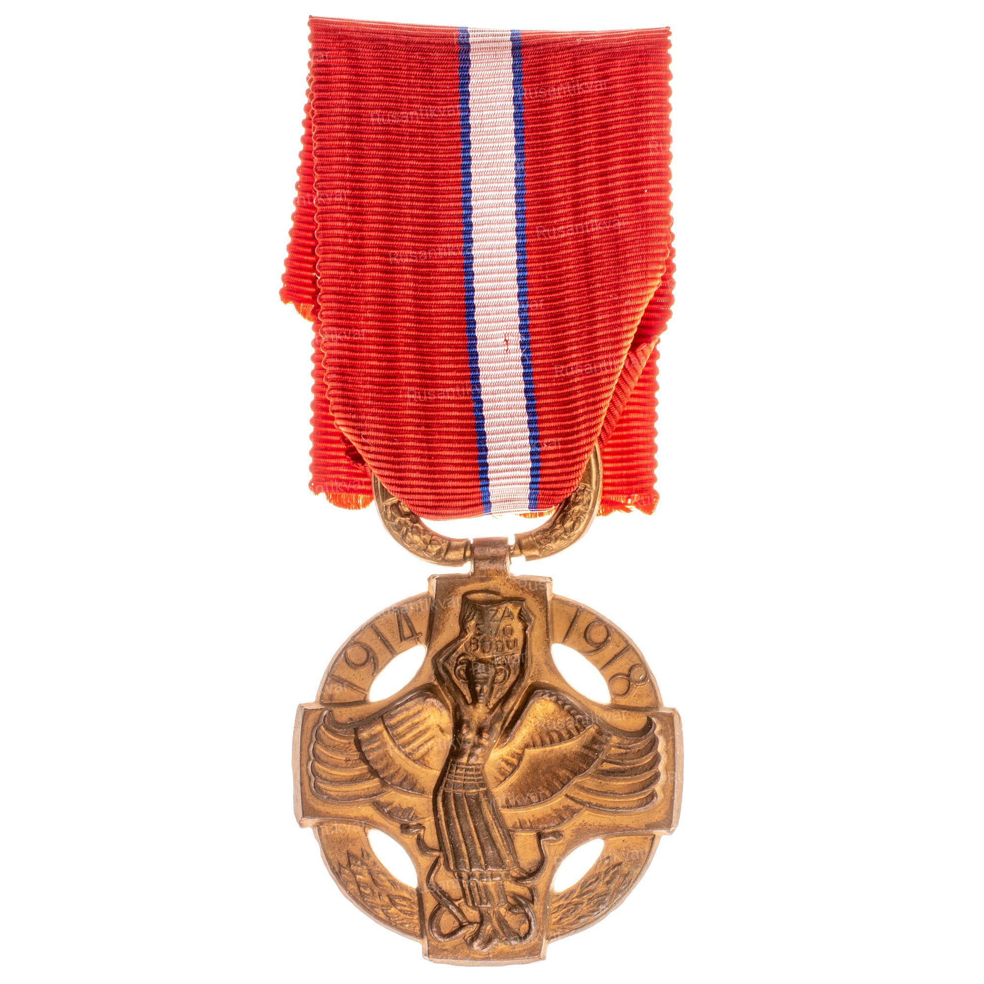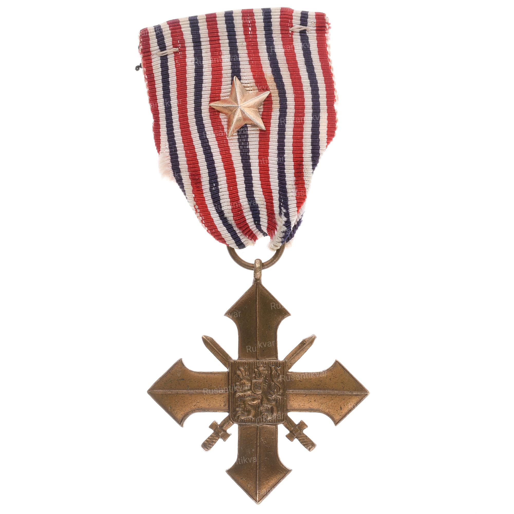 Учреждена 1 декабря 1918 г указом Президента Чехословацкой Республики Томаша Гаррига Масарика (1918 - 1935 гг). Автор эскиза - французский художник и медальер Эмиль Антуан Бурдель (годы жизни 1861 - 1929 гг, его инициалы помещены на нижнем луче креста на обороте "АВ"). Неизвестное производство, 1918 - 1938 гг. Бронза. Сохранность отличная (UNC-).
