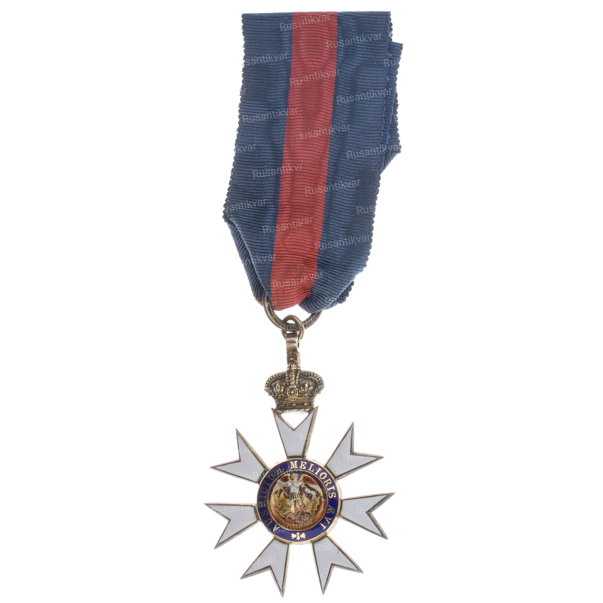 Соединенное королевство Великобритании и Ирландии. Знак ордена Св. Михаила и Св. Георгия, на орденской ленте. Начало XX в. Неизвестная мастерская. Без клейм. Золото, серебро, позолота, эмаль, 27,57 г; шелк (муар). Размеры 64,8 x 47,3 мм. Сохранность отличная.