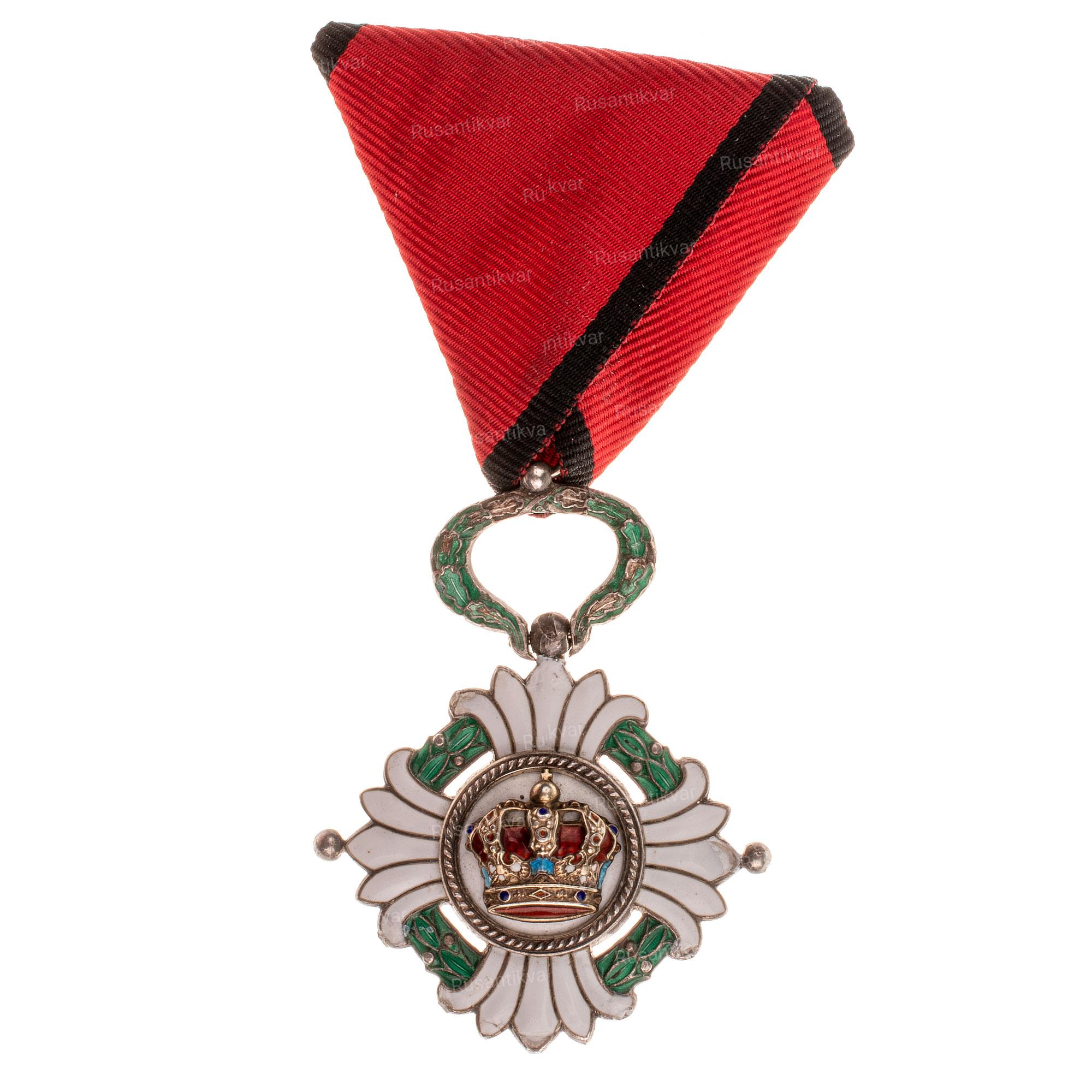 Знак Ордена Югославской Короны 5 рыцарской степени (класса). Королевство Югославия (1929-1941 гг.). Оригинальное название на сербском языке; Орден Југословенске Круне.