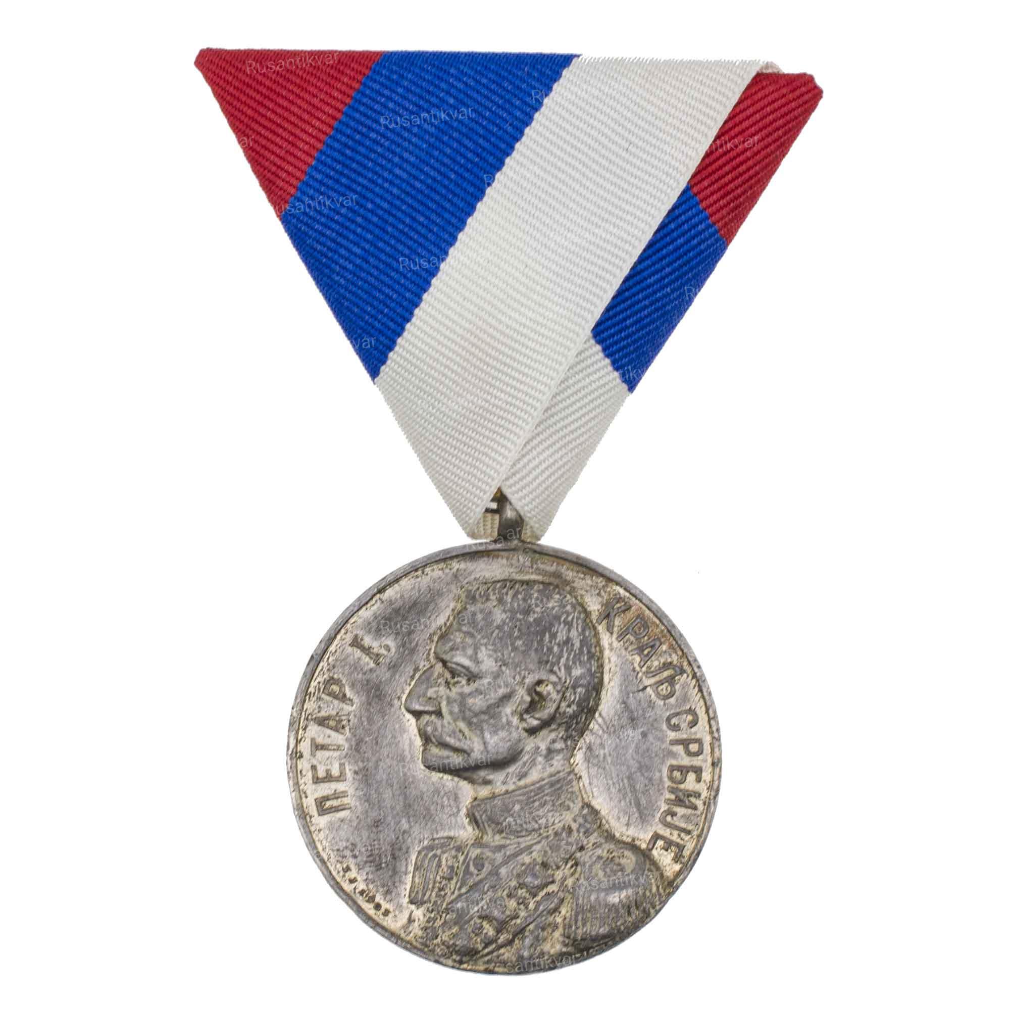 Учреждённая королём Сербии Петром I Карагеоргиевичем 31 октября 1913 года. Швейцария, Huguenin Frères of Le Locle и Париж, "Arthus-Bertrand & Berander"; дизайн награды выполнил сербский художник и офицер Георгий Чарапич (1876 - 1941 гг). Общий тираж 430.000 экз. Бронза, позолота, 20.54 гр. Диаметр 35.88 мм. Сохранность очень хорошая (XF+).