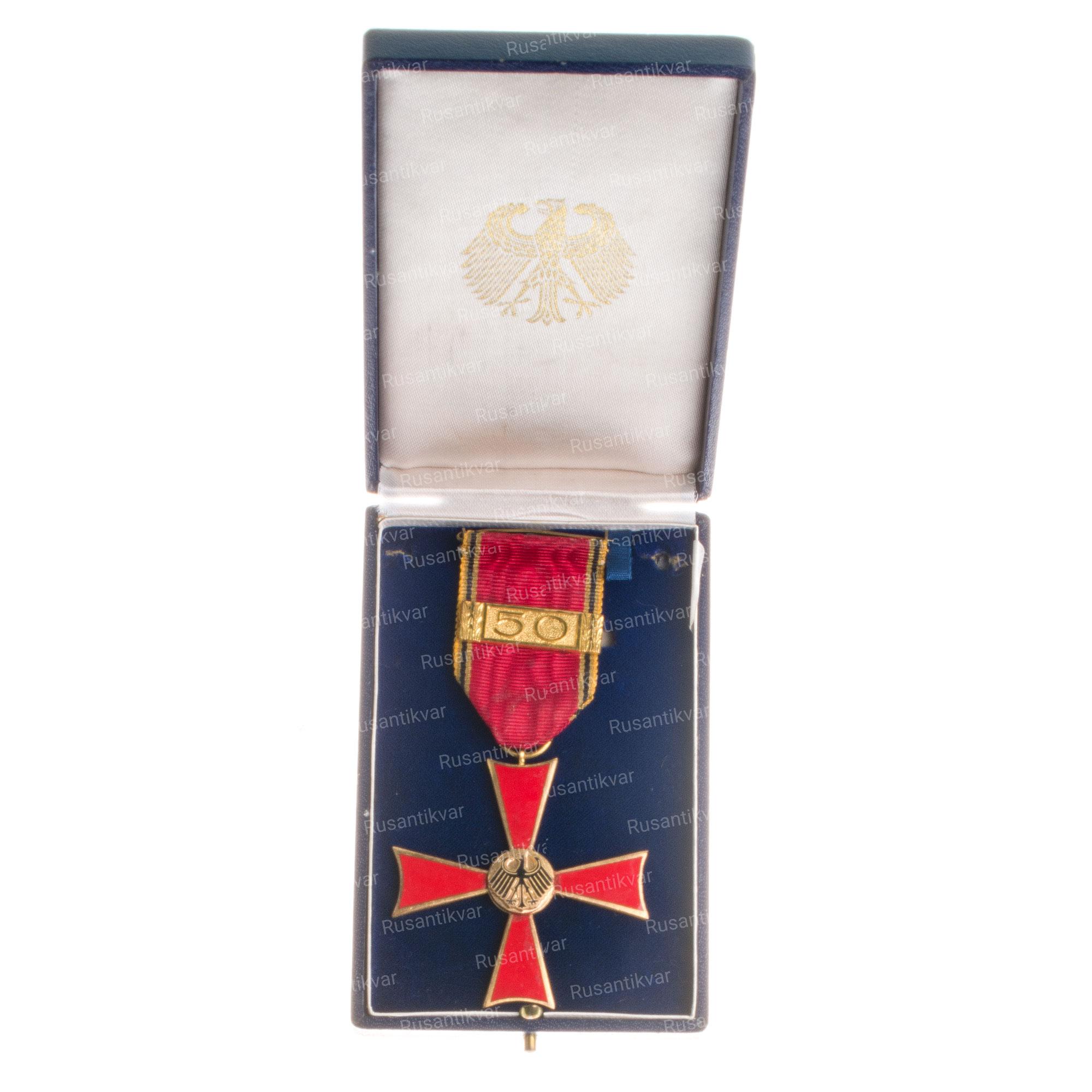 ФРГ. Крест "За заслуги.50 лет выслуги" в наградной коробке.