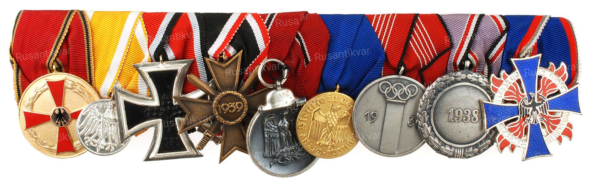 Отличная наградная колодка офицера вермахта.Продолжившего службу в пожарной службе Германии..
