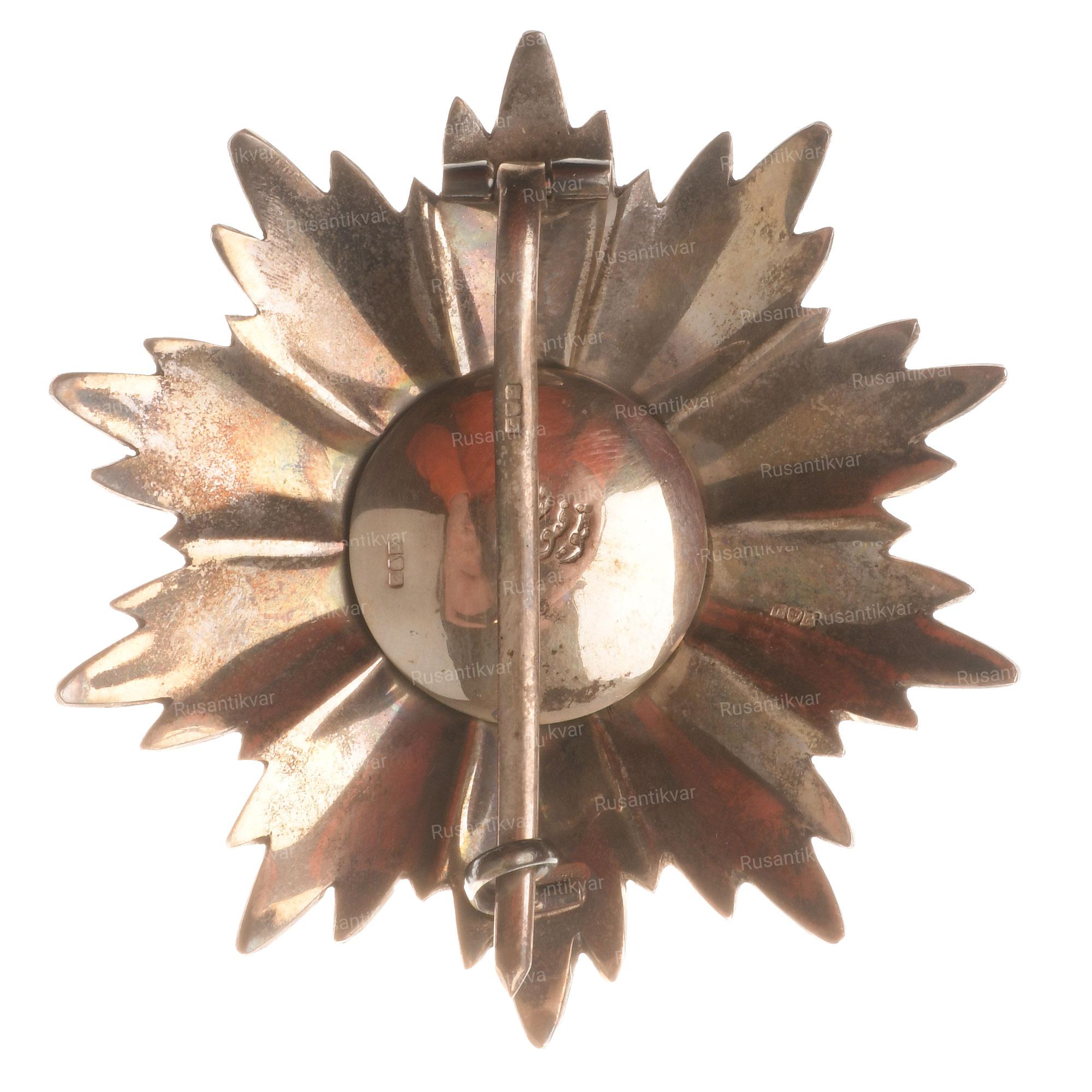 Звезда ордена аналогична знаку, но большего размера.
