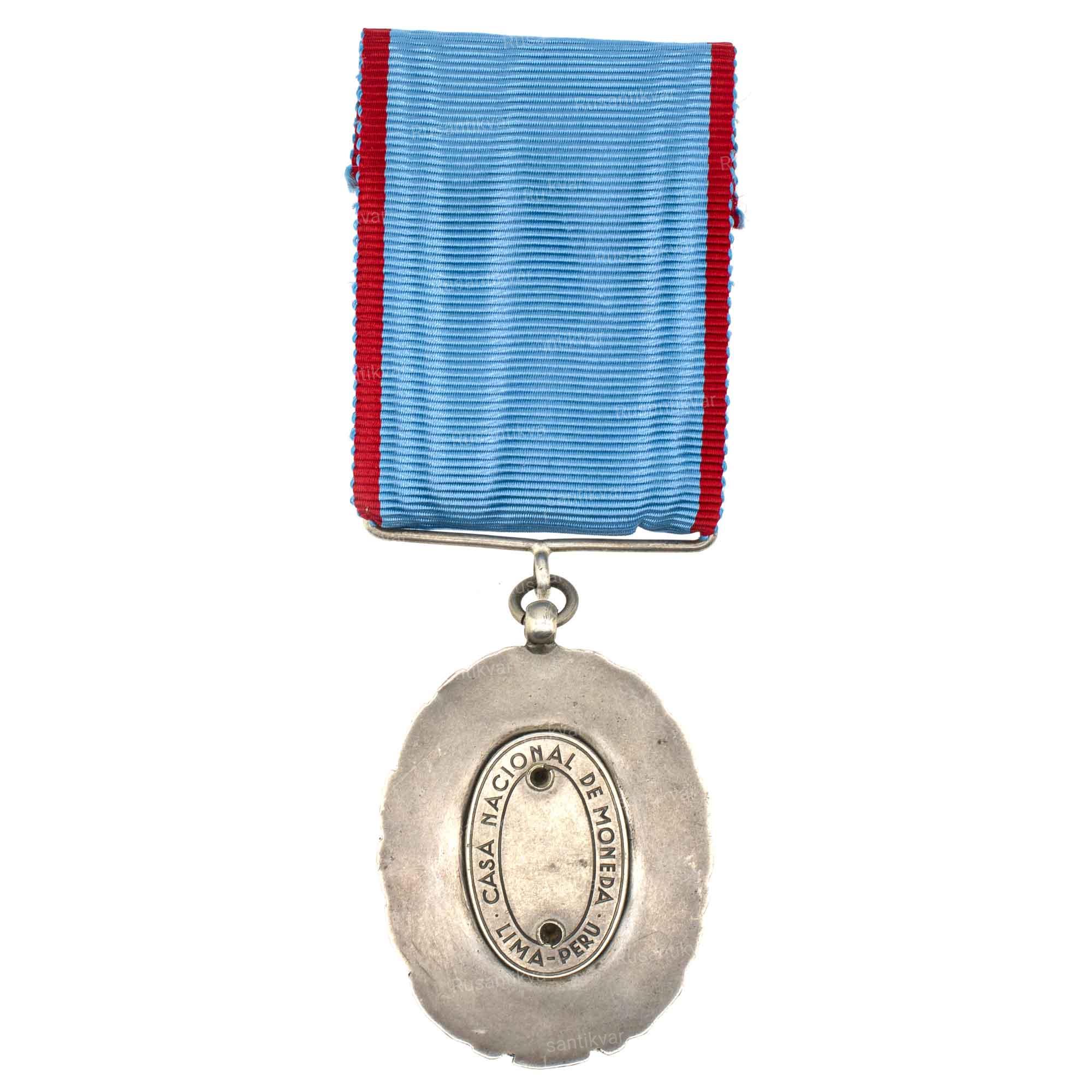 Учреждён в октябре 1946 г. Перу, г Лима, Национальный Монетный двор, 1946 - 2022 гг. Серебро 925", эмаль, 29.9 гр. Размеры 50.3 х 44 мм. На оборотной стороне выбита цифра "925" - проба серебра, из которого изготовлен орден. Сохранность отличная (UNC-). Довольно редкий (Р).