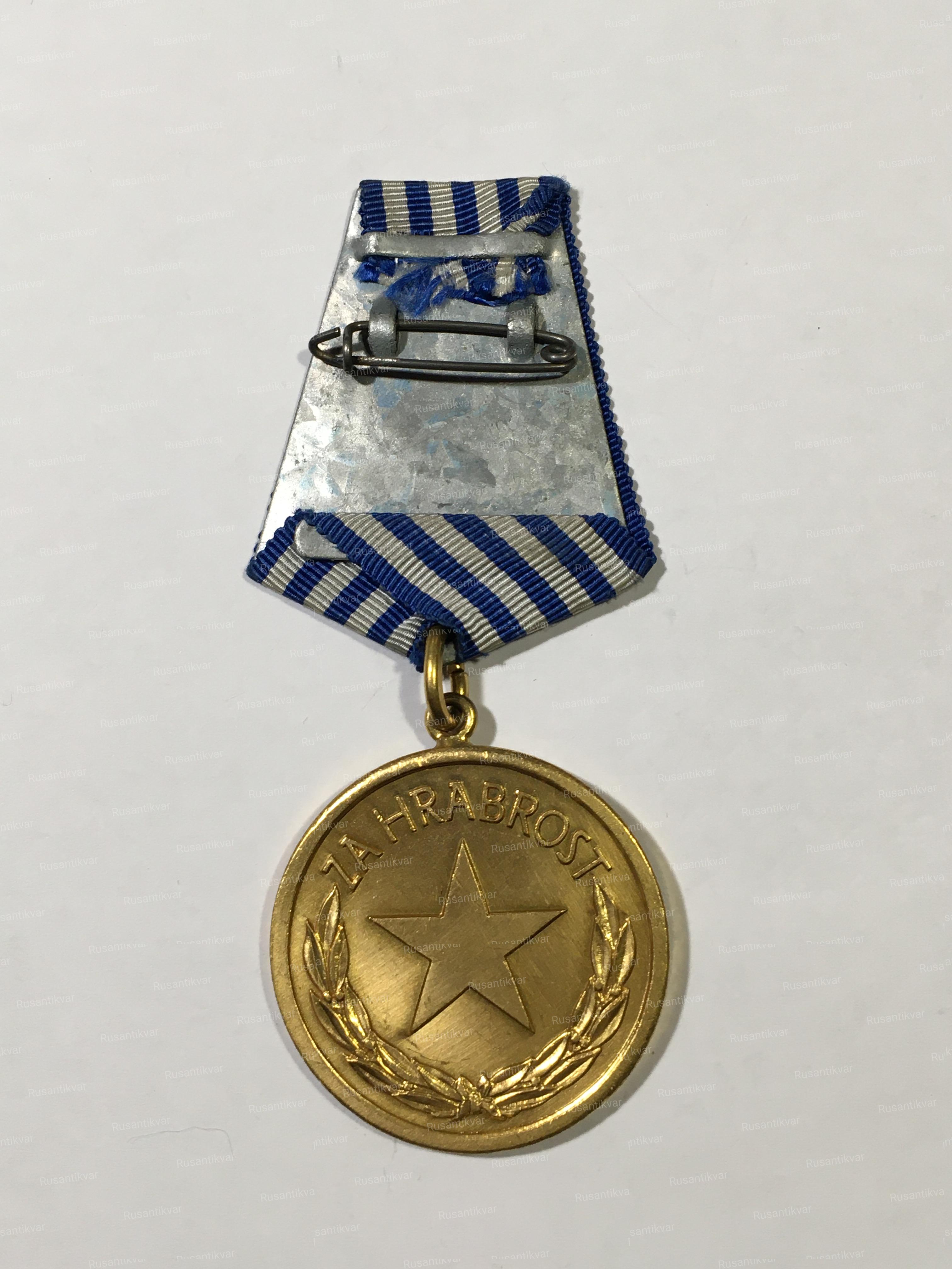 Медаль «За храбрость» . Югославия. Оригинальное название на хорватском языке; Medalja za Hrabrost. Учреждена 15 августа 1943 года (с изменениями в 1945 году) командующим Народно-освободительной армии Югославии Иосипом Броз Тито (1941-1945 гг.). Производственный выпуск 1945-1991 гг.