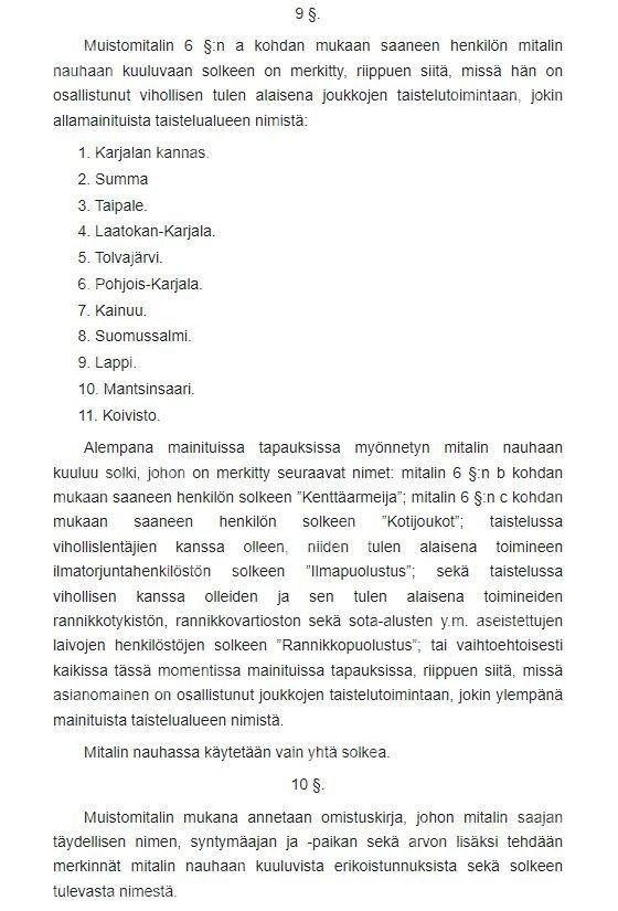 В статьях 2 и 5 Свода правил говорится о награждении иностранцев медалью "Зимняя война", если они соответствовали определенным критериям.