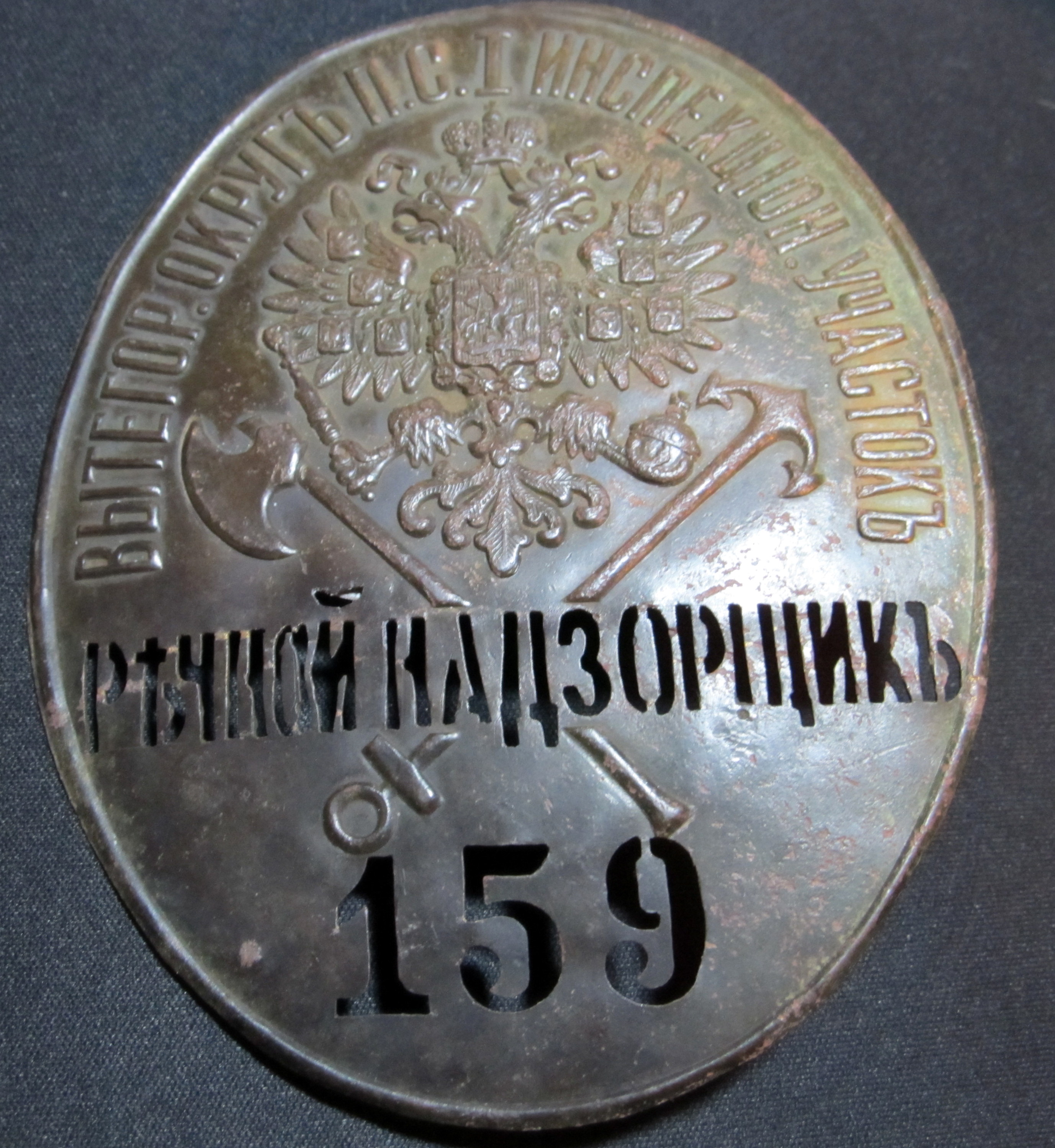 Должностной знак; Речной надзорщик Вытегорского округа путей сообщения, 1й инспекционный участок.