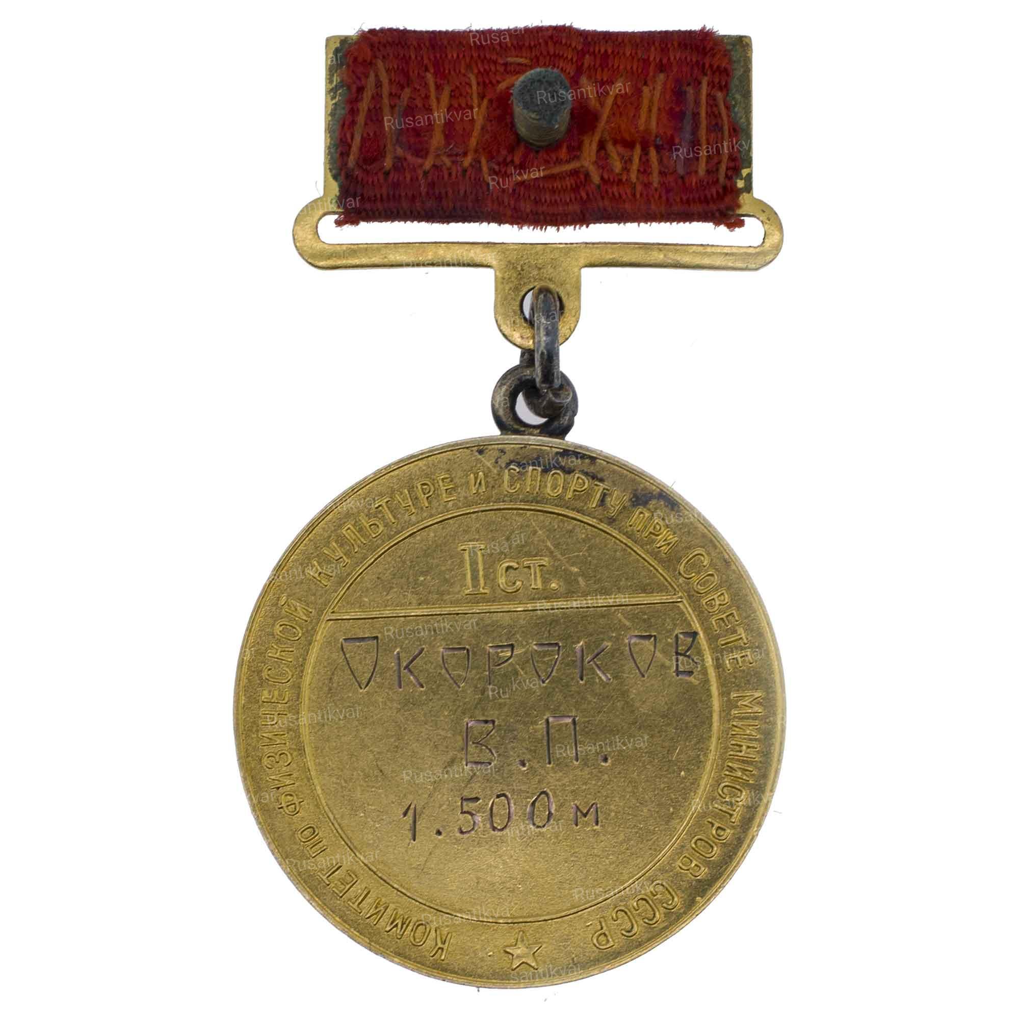На об. ст. медали выгравировано: «1 ст./ Окороков В.П./1500 м.»