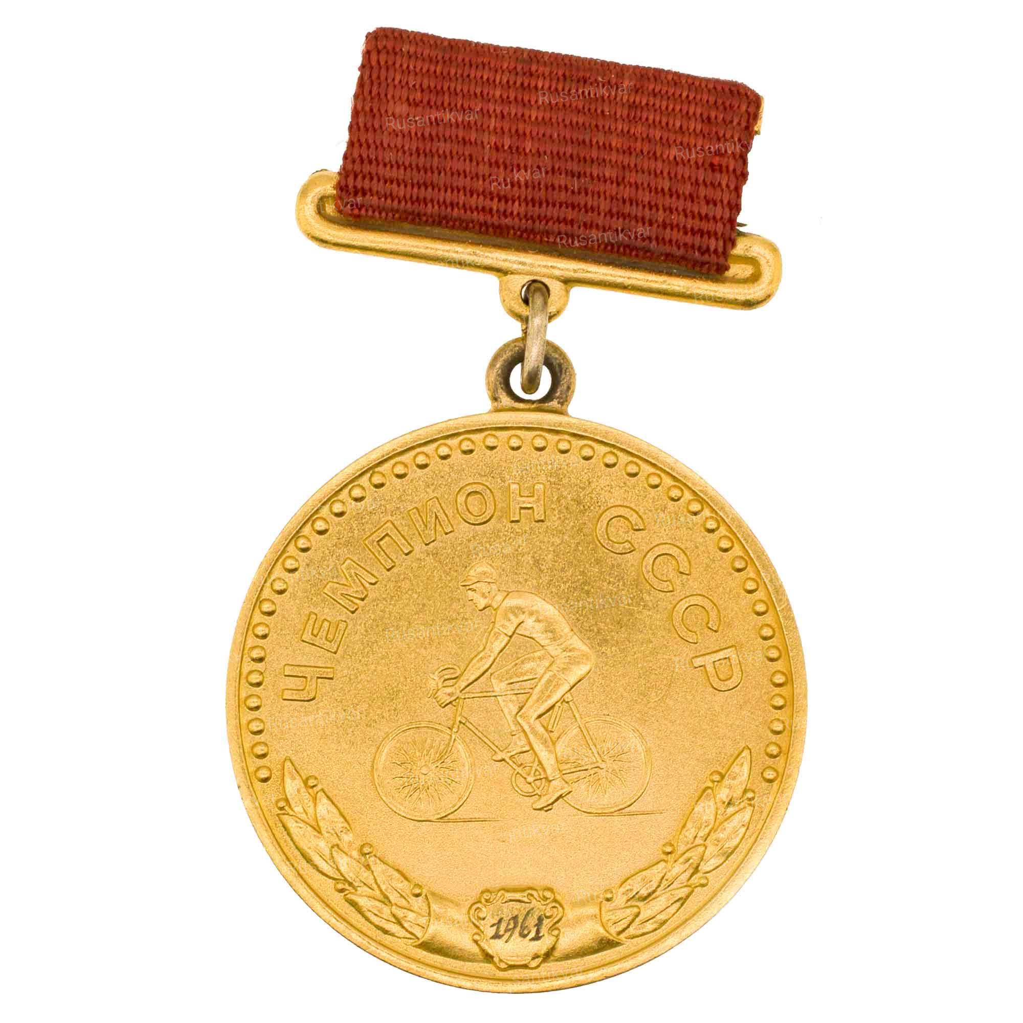 Большая золотая медаль чемпиона СССР по велоспорту, 1961 г. Комитет по физической культуре и спорту при Совете министров СССР.
