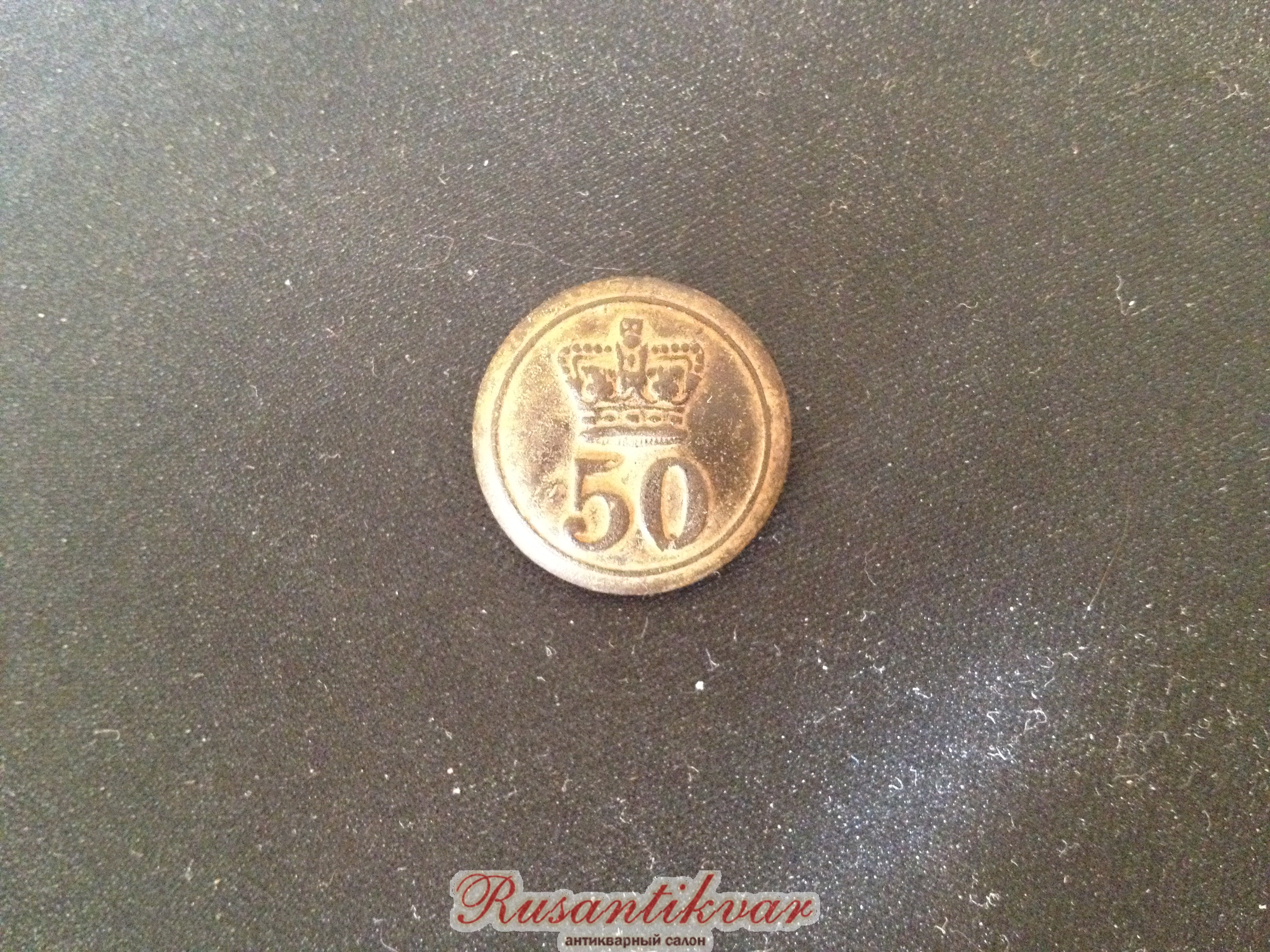 Форменная пуговица для одежды вне строя нижних чинов 50-го пехотного полка армии Великобритании, 1855 г.