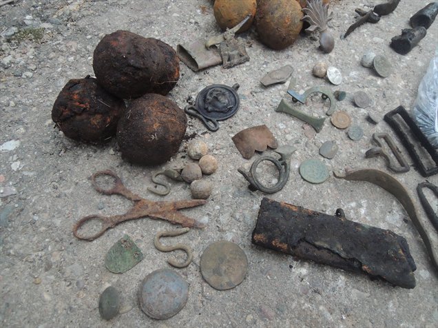 Словом еще горка ядер, лев и цифра, пожалуй все... сигналов больше не было четких, а еще были пуговки, часть кирасы, подковы да пожалуй и все... нам как то надоело, и мы уехали, но местные друзья обещали вернуться. Будим ждать их результата, я сегодня слышал что ЕСТЬ!!!??? :shock: