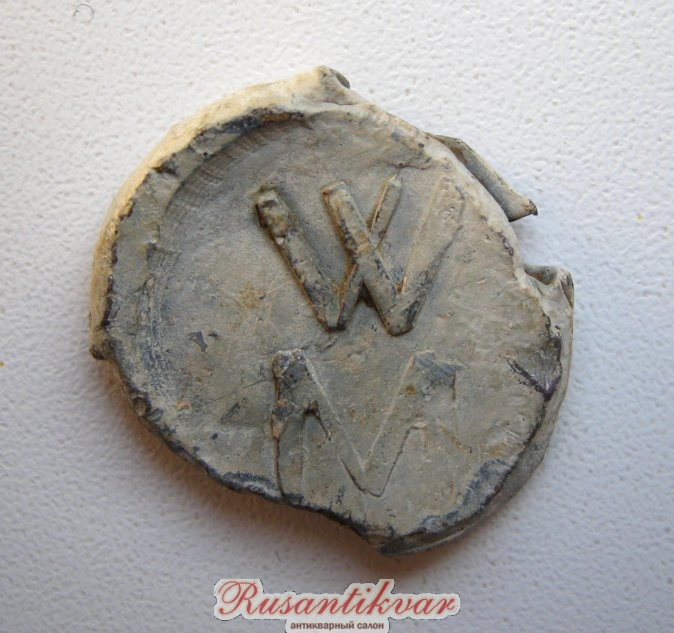C разрешения владельца. Свинцовая пломба . Одна сторона чистая . На второй две буквы W M ( буква М - видимо сокращение слова militaire ).
