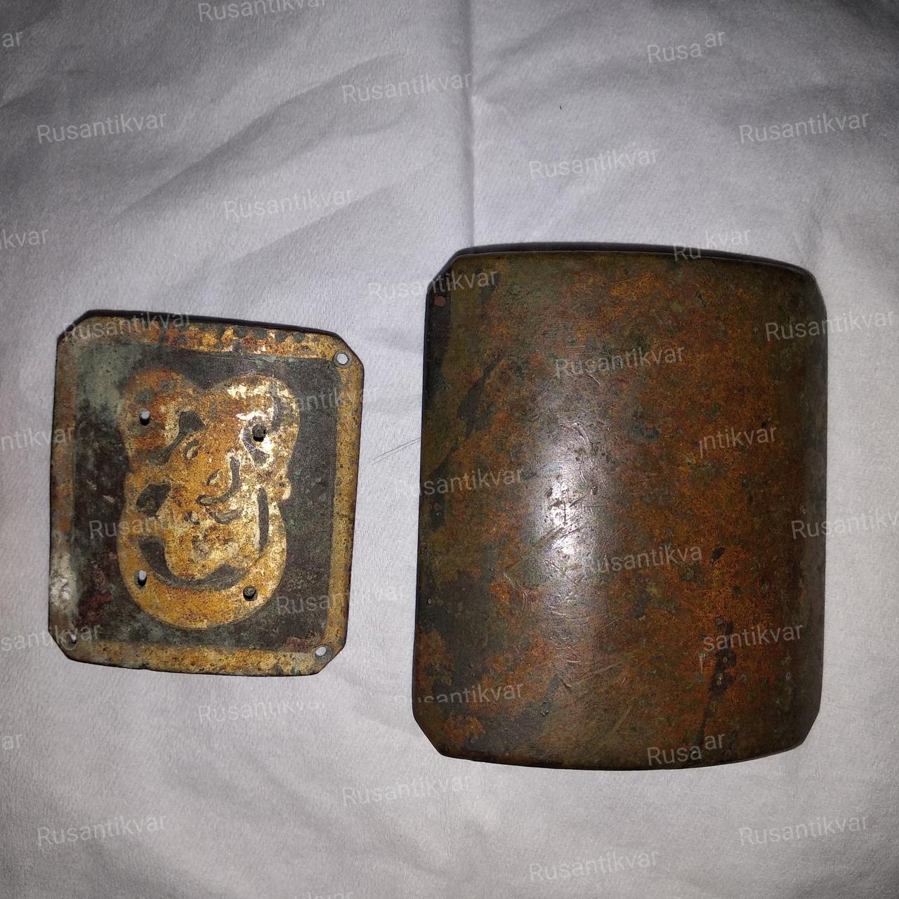 Вот и я не могу понять что за силуэт от накладки просматривается, найдена в палате 1го егерского полка франции.