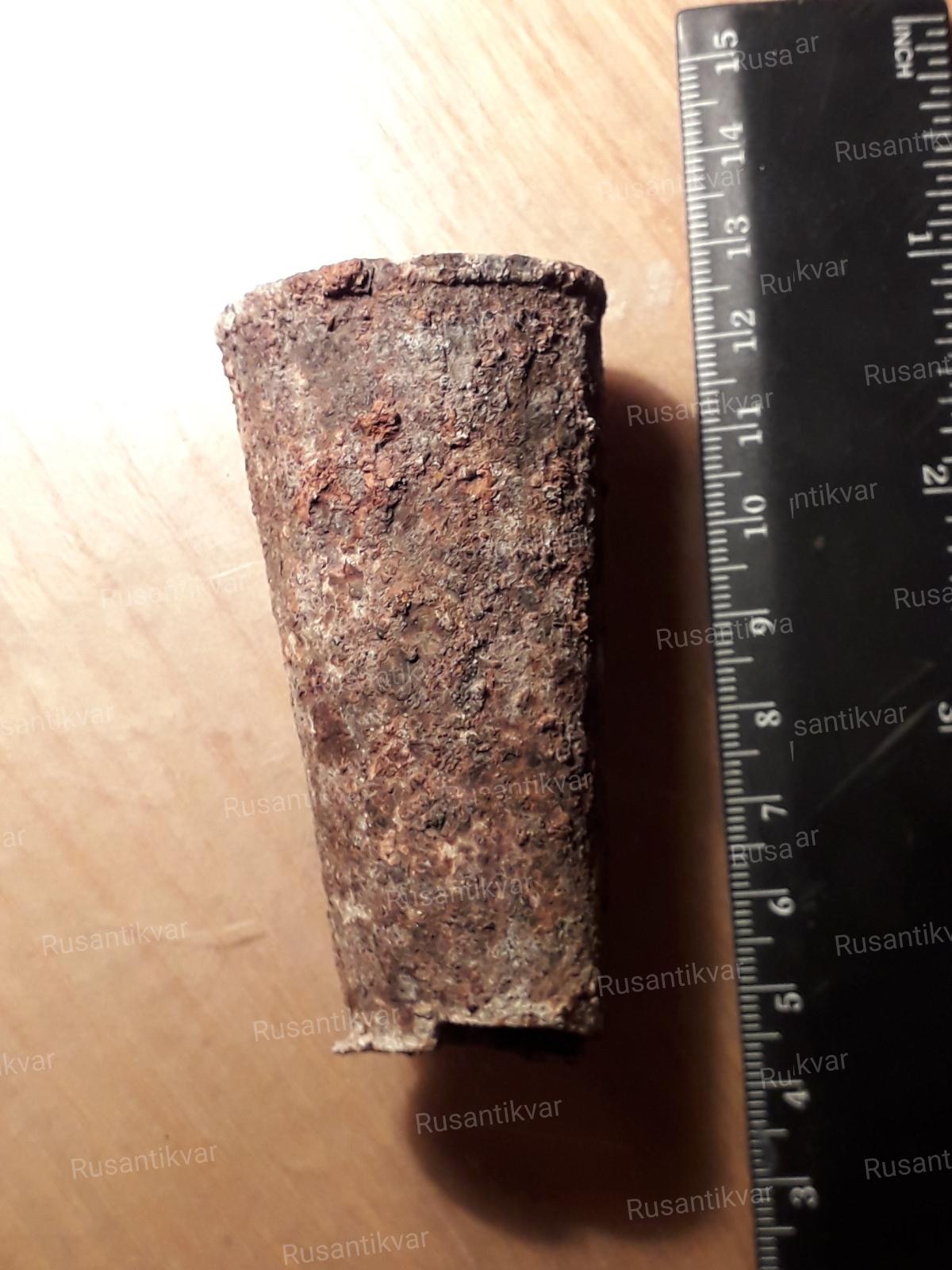Хотелось услышать мнение по одному предмету. Жестяная трубка ( жесть толщиной как на флягах , банках "рационов" , баночках от крема для обуви и т.д. ) , размеры на фото , к одному концу сужается примерно до 3 см. Верх шириной чуть больше 4 см. Верх фабрично завальцован. Низ сохранился не весь . Видно , что обрезан чем-то острым. По длине идет фабричный шов.